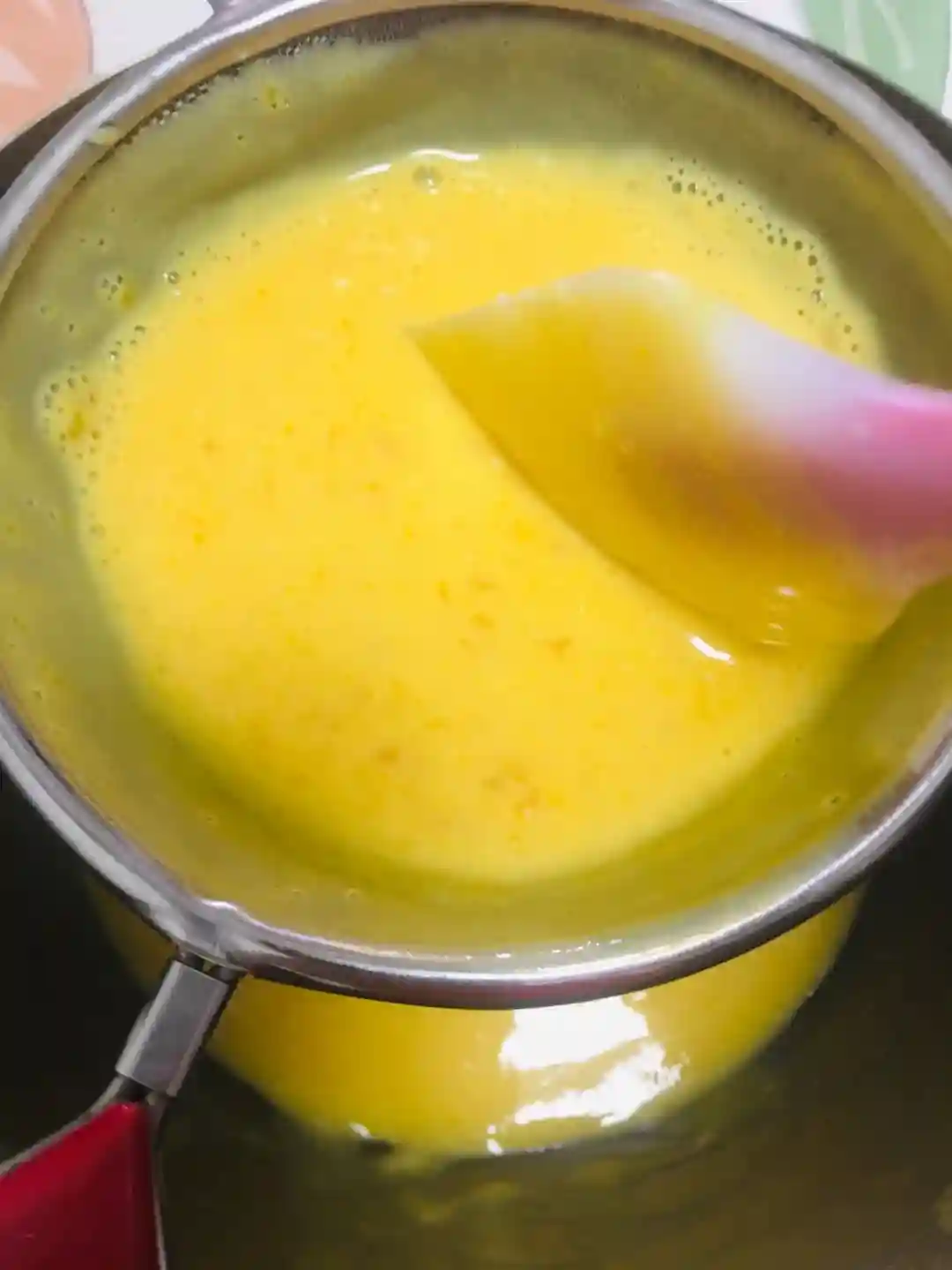 为了布丁口感更细腻,要将布丁液过滤。