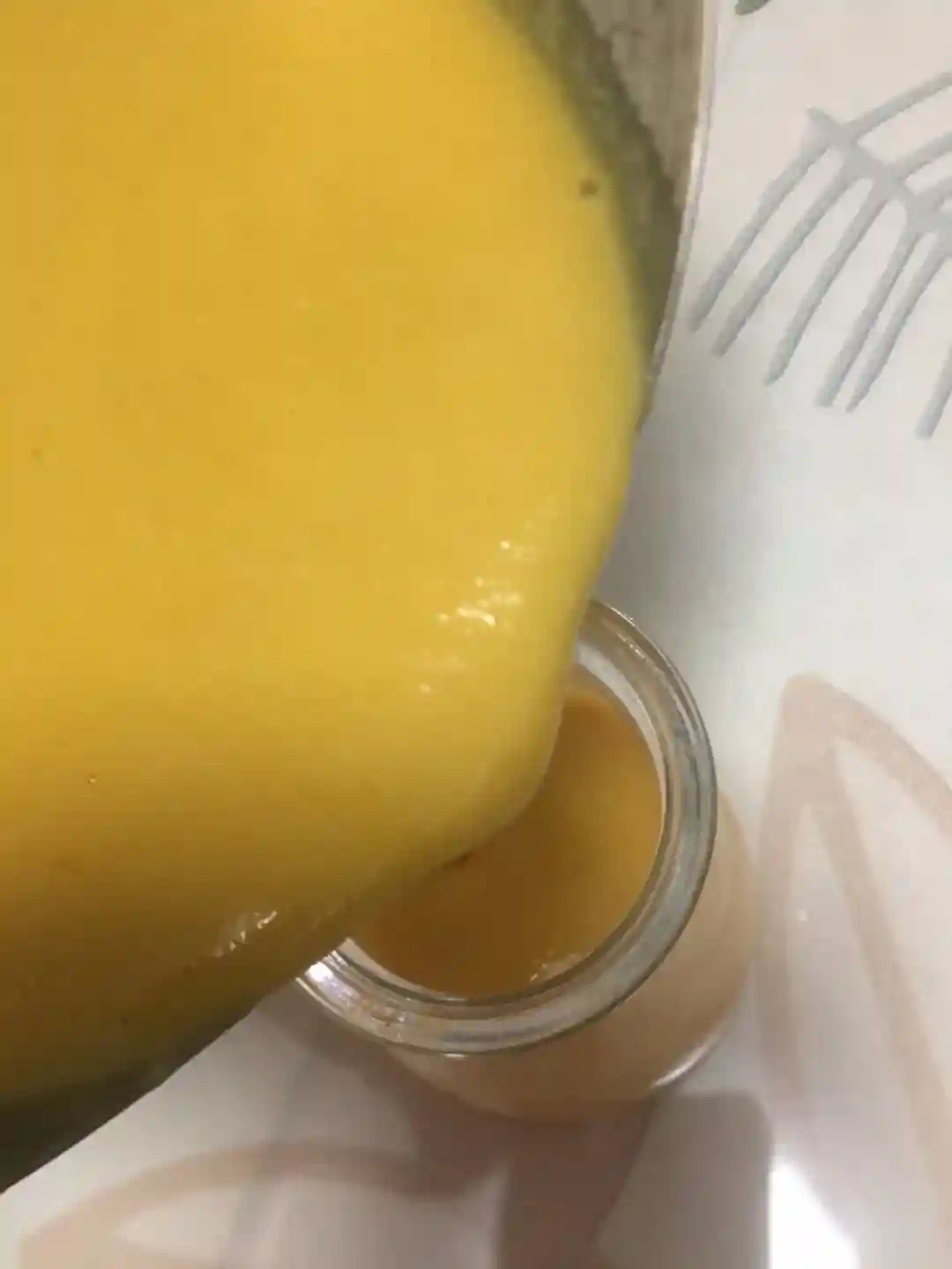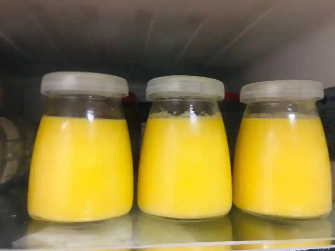 6/把芒果混合物过筛一下,这样布丁口感更细腻