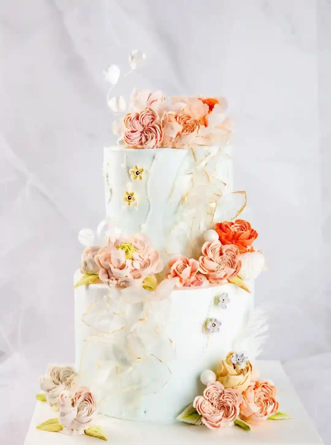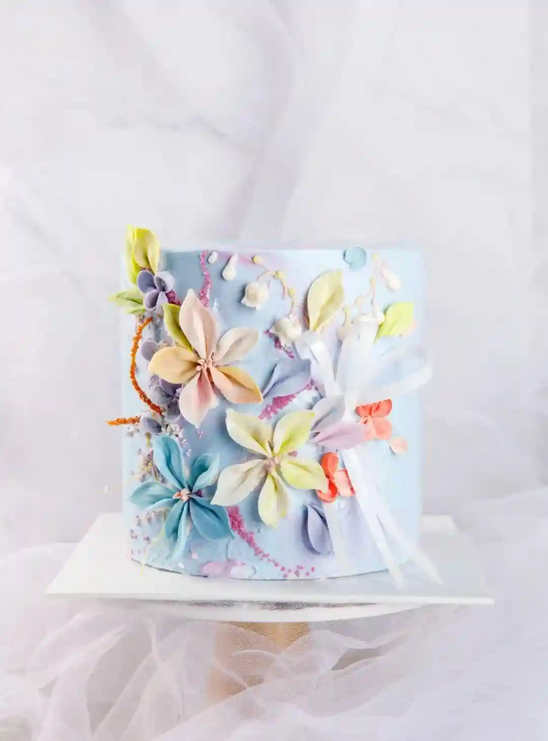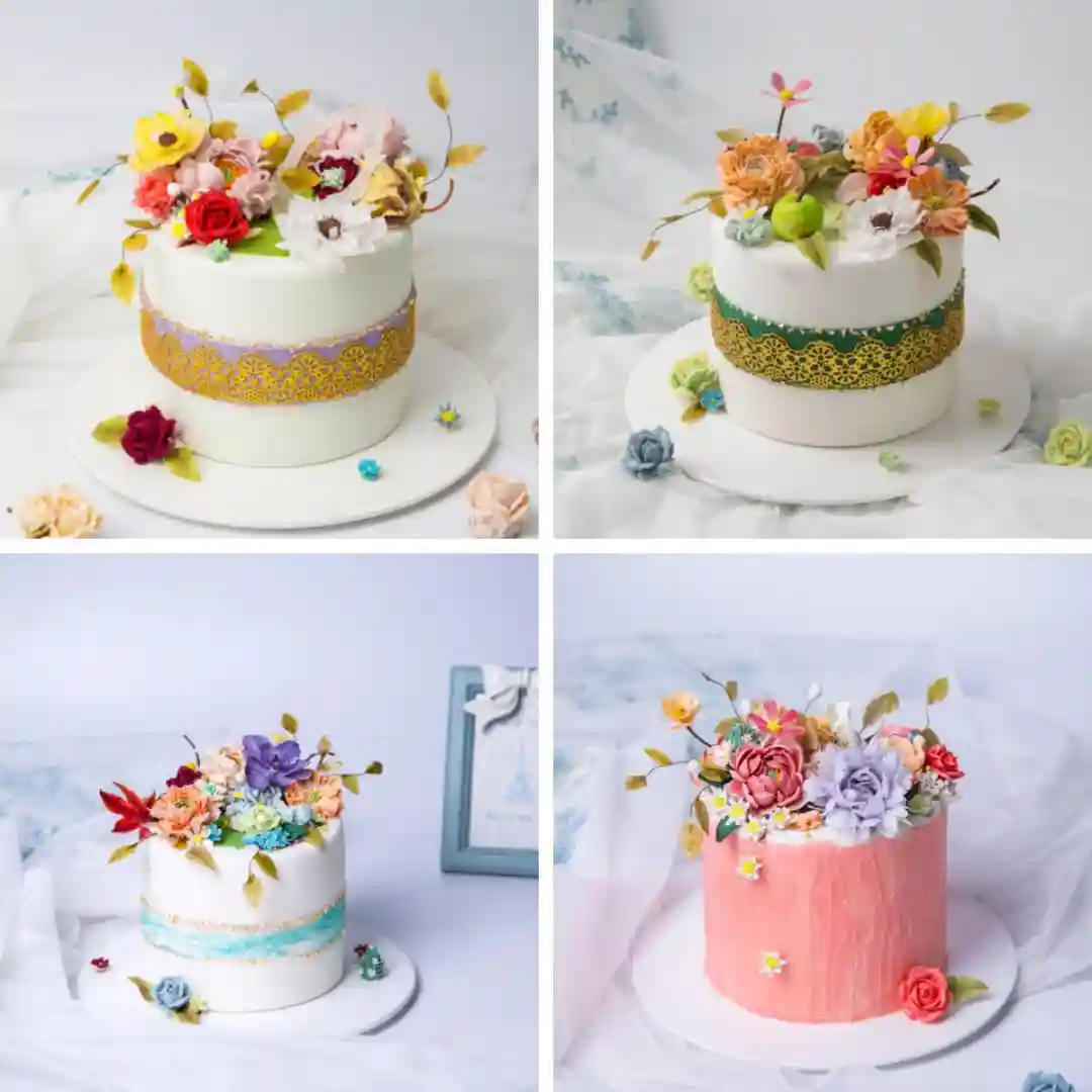 一款的蛋糕的搭配色彩不宜超过三种,否则会显得太过花哨(彩虹蛋糕除外),分清蛋糕的主色和点缀色,让蛋糕的整体主色突出、显得和谐。