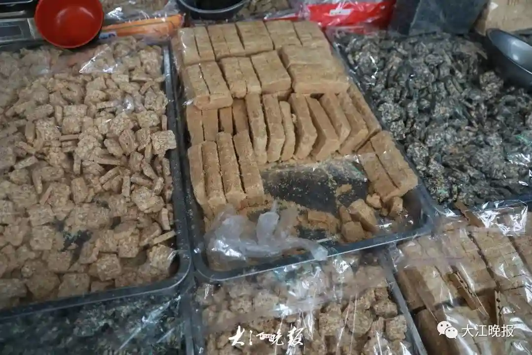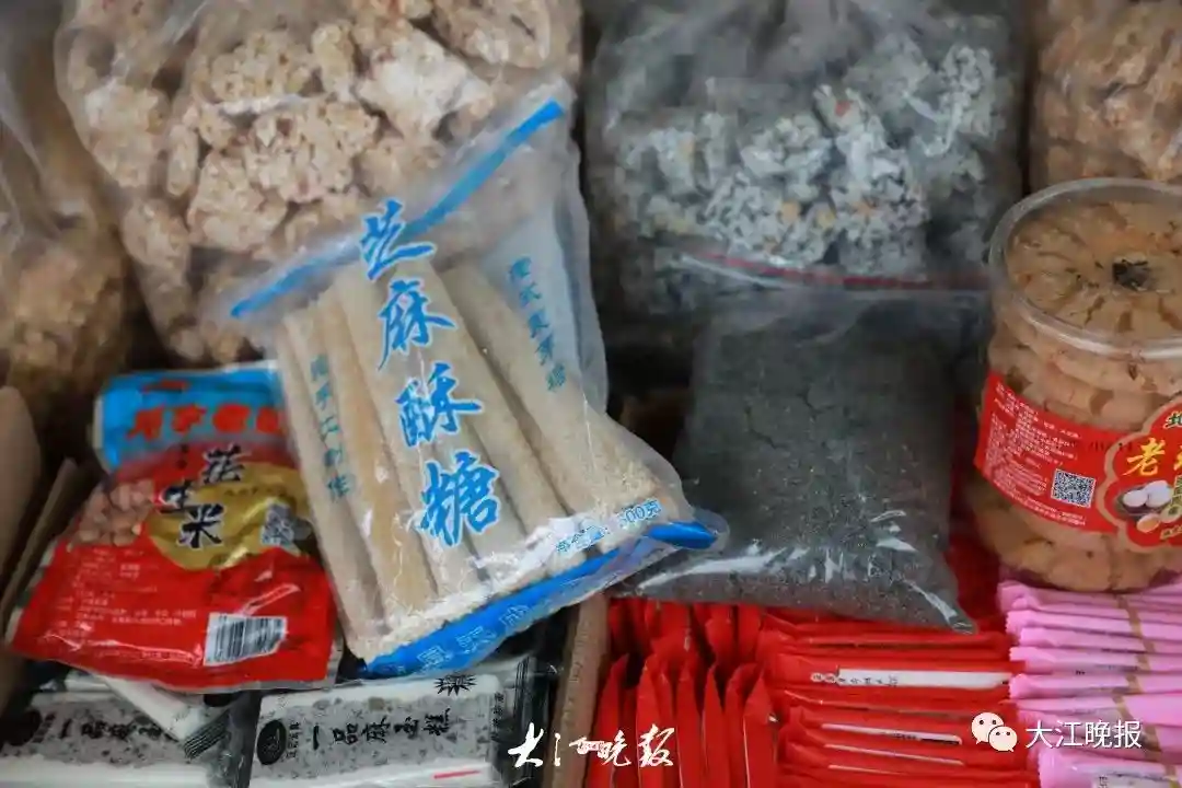 冬季炒米糖是主打,配角还有甜滋滋的红薯片,荞麦做的苦荞片,都很有季节特色。