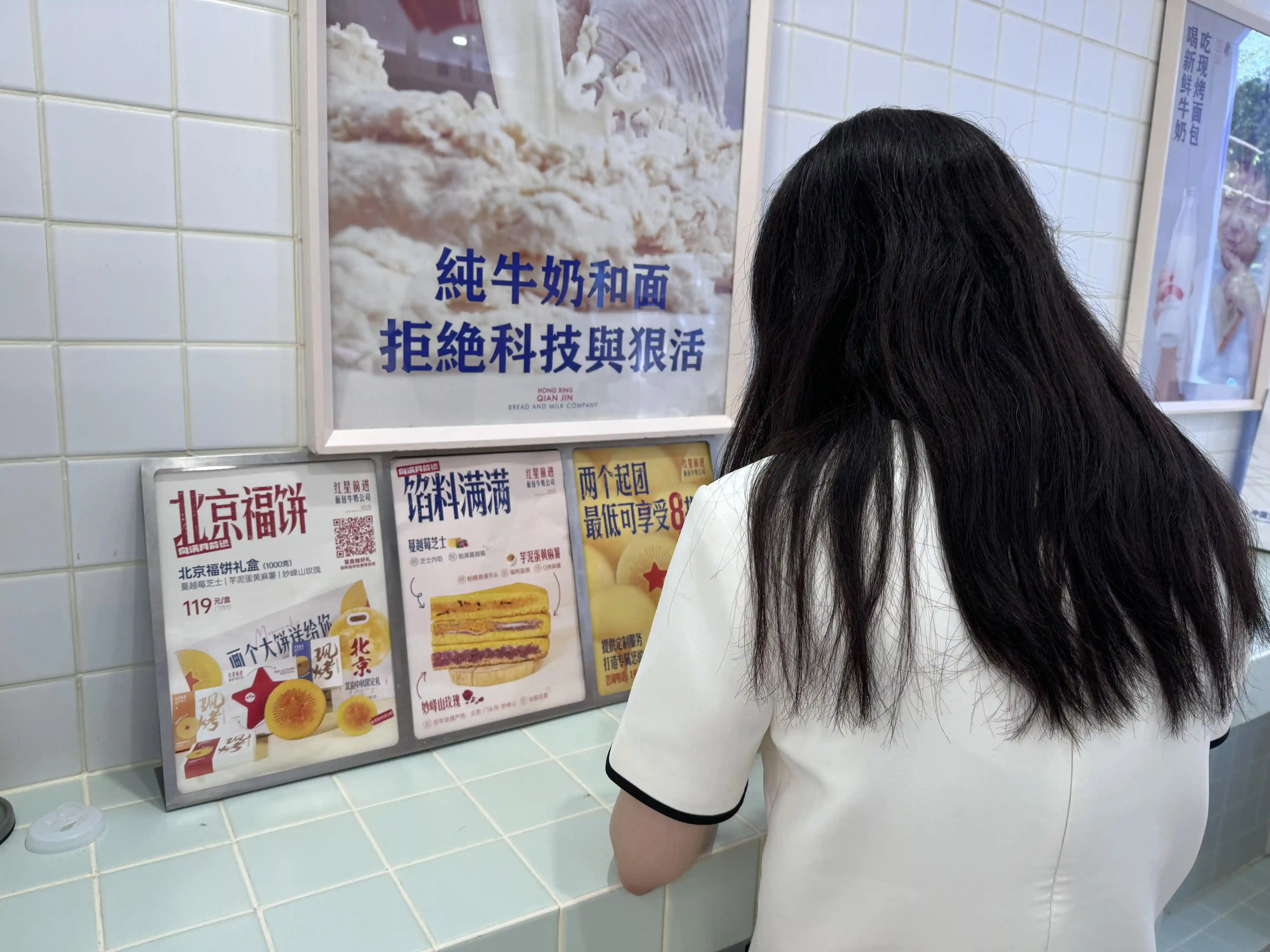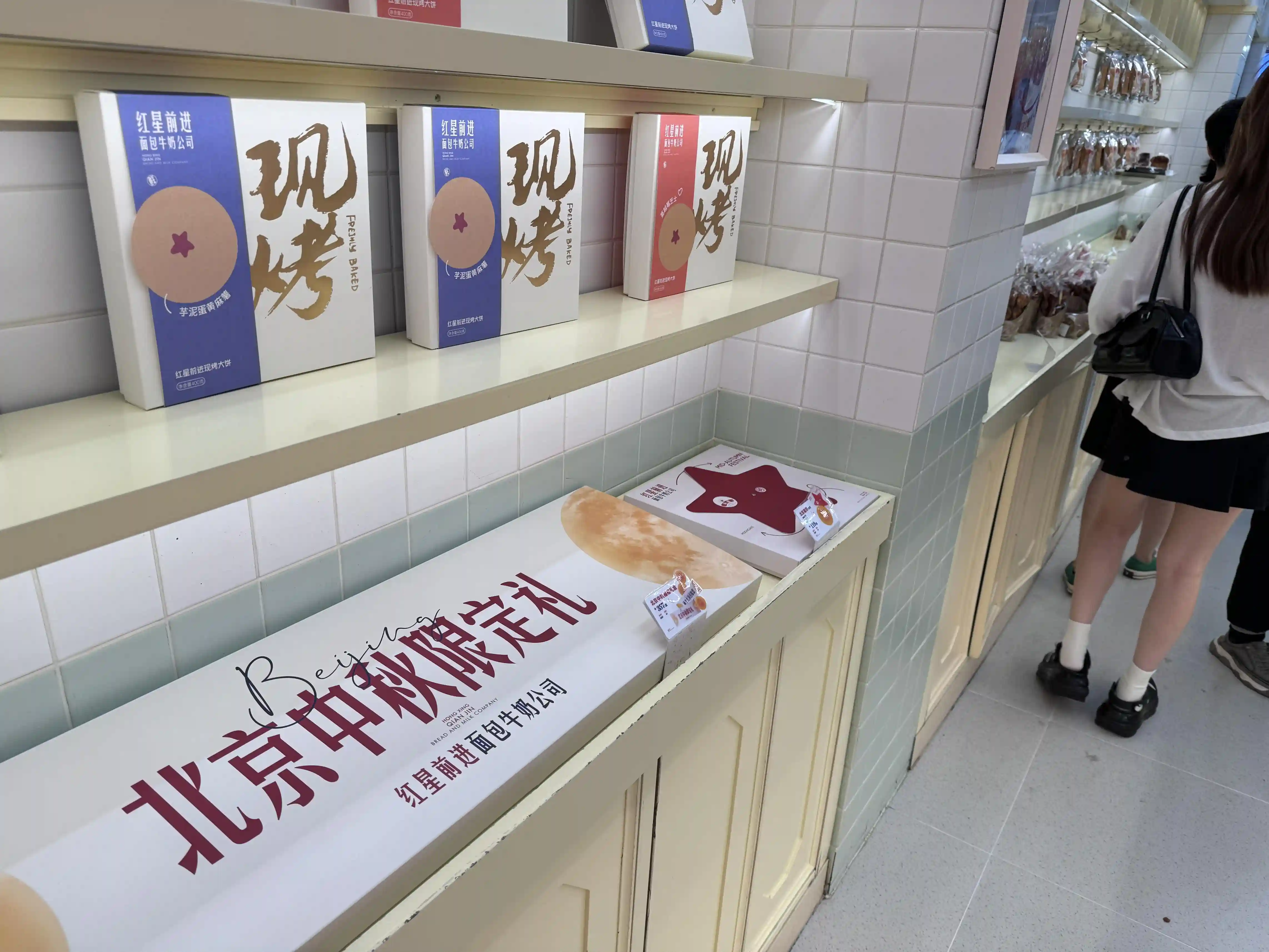 “画个大饼送给您!”在网红甜品店“红星前进面包牛奶公司”,刚上市不久的“北京福饼”也成了抢手货。这款中秋限定的现烤福饼共有2种尺寸、3种口味,其中玫瑰味使用的是产地来自北京门头沟妙峰山的玫瑰,最受顾客喜爱,不少前来打卡的游客都会带一个尝鲜。当天下午5时,柜台里的现烤福饼已经只剩3份了。店员介绍,目前门店还有盲盒抽奖活动,可以免费领取现烤福饼。
