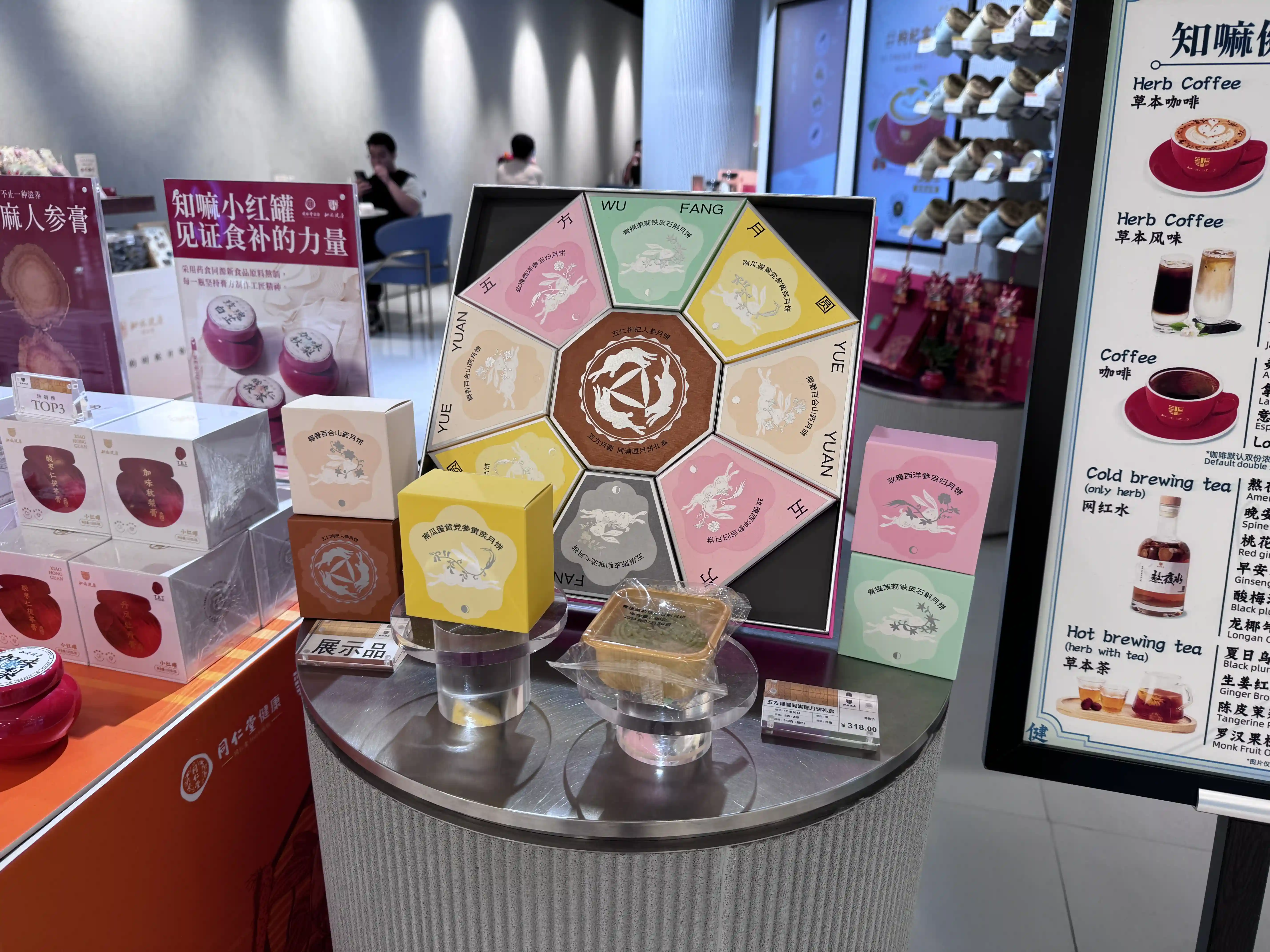 同样是老字号,这两天,位于王府井的同仁堂知嘛健康咖啡养生BAR也有了新变化。店门口显眼处精心布置的“中药健康月饼”柜台吸引了众多市民的注意。青提茉莉铁皮石斛月饼、五仁枸杞人参月饼、南瓜蛋黄党参黄芪月饼……这些馅料独特的月饼不仅融合了传统中医中的五行养生理念,也照顾到了现代消费者的口味倾向,吸引了不少年轻人前来尝鲜。“我们每年都会出月饼礼盒,今年的礼盒特别受欢迎,这两天有不少团购订单,周末门店还将举办月饼品鉴活动,欢迎大家来参加!”店员热情地说。