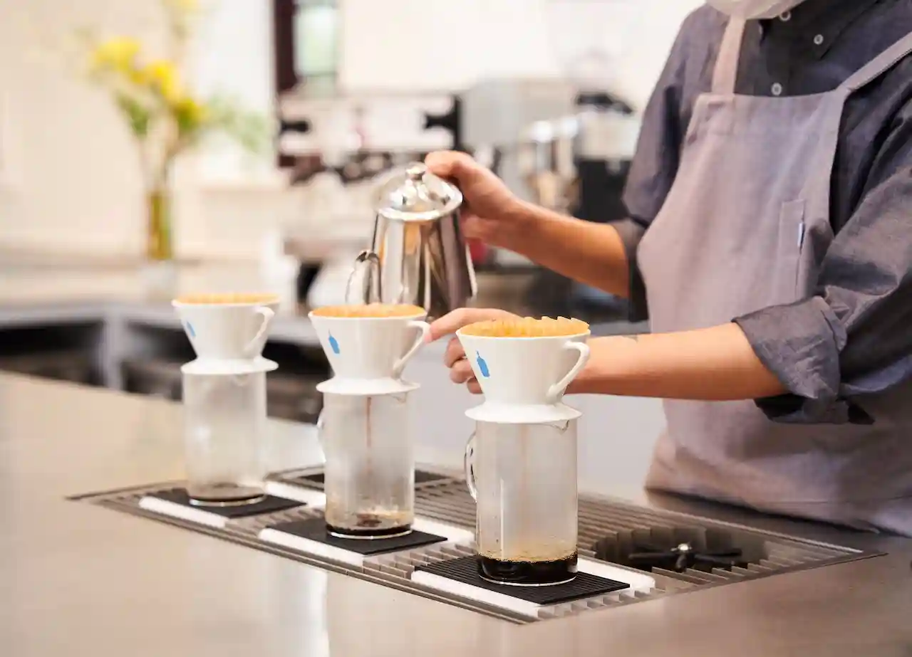 咖啡师制作手冲咖啡蓝瓶咖啡图
