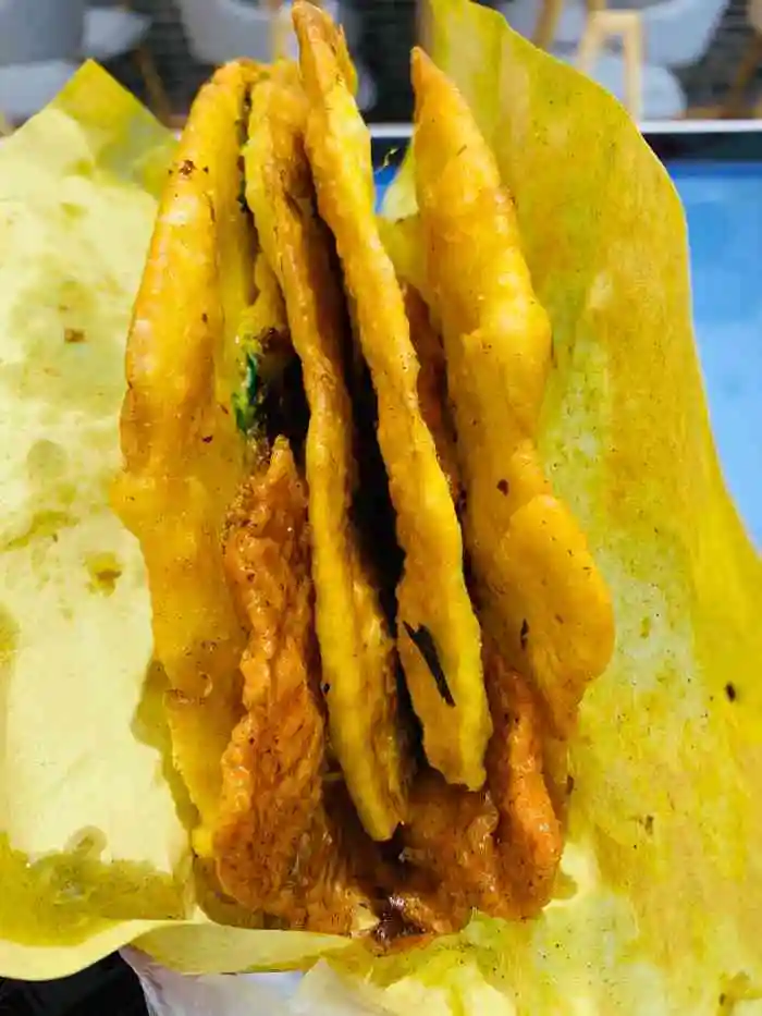 馋佬沛芝士萝卜丝饼:馋佬沛芝士萝卜丝饼,绝对能给你带来惊喜。现包现做,保证了新鲜和口感。超大的一个饼,金黄酥脆的外皮,里面是满满的萝卜丝和芝士。咬上一口,萝卜丝的清甜与芝士的香浓完美融合,还有汁水满满的炸鸡腿和酸甜的爆珠酸梅汤,让你的味蕾沉浸在幸福的滋味中。