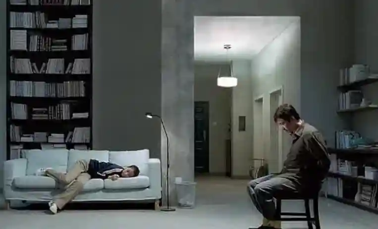 此时画面却突然切到了梁朝伟拜访一间公寓,他与黄磊上演了一出谈笑中带着杀机的对话。
