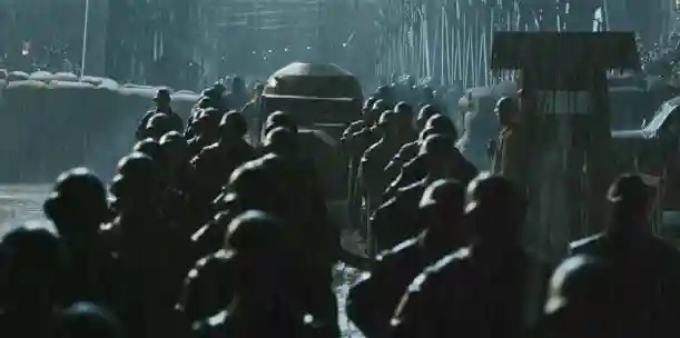 除了欺骗性,《无名》的画面还很有“隐喻”,交代了许多故事的“弦外之音”。