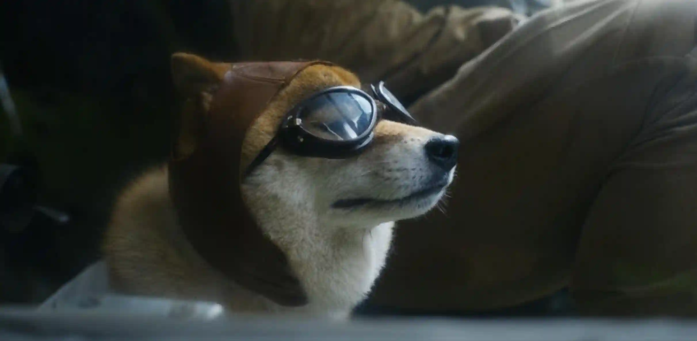 一只是油光水滑,得意洋洋坐在日军轰炸机里的柴犬。