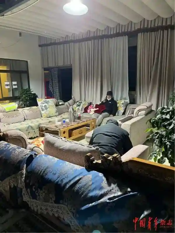 8月14日,吉定镇下了一周来第一场雷雨,黄昏时分甚至夹杂着冰雹。此时,镇政府的工作人员正在卫生院收拾东西准备下乡,杨书记见下起了冰雹,就喊大家先回屋避一避,但没有人停下手里的活,因为大家知道,现在必须和时间赛跑。“我当时眼眶真的红了。”杨书记说,“我们的一线人员太不容易了,连续奋战这么多天,没有一个人抱怨。”一周来,镇政府的工作人员被分成了两组,24小时轮流值守,维持全镇的静默管理和核酸检测工作。深夜,在镇政府的食堂里,总有工作人员临时开会的身影。
