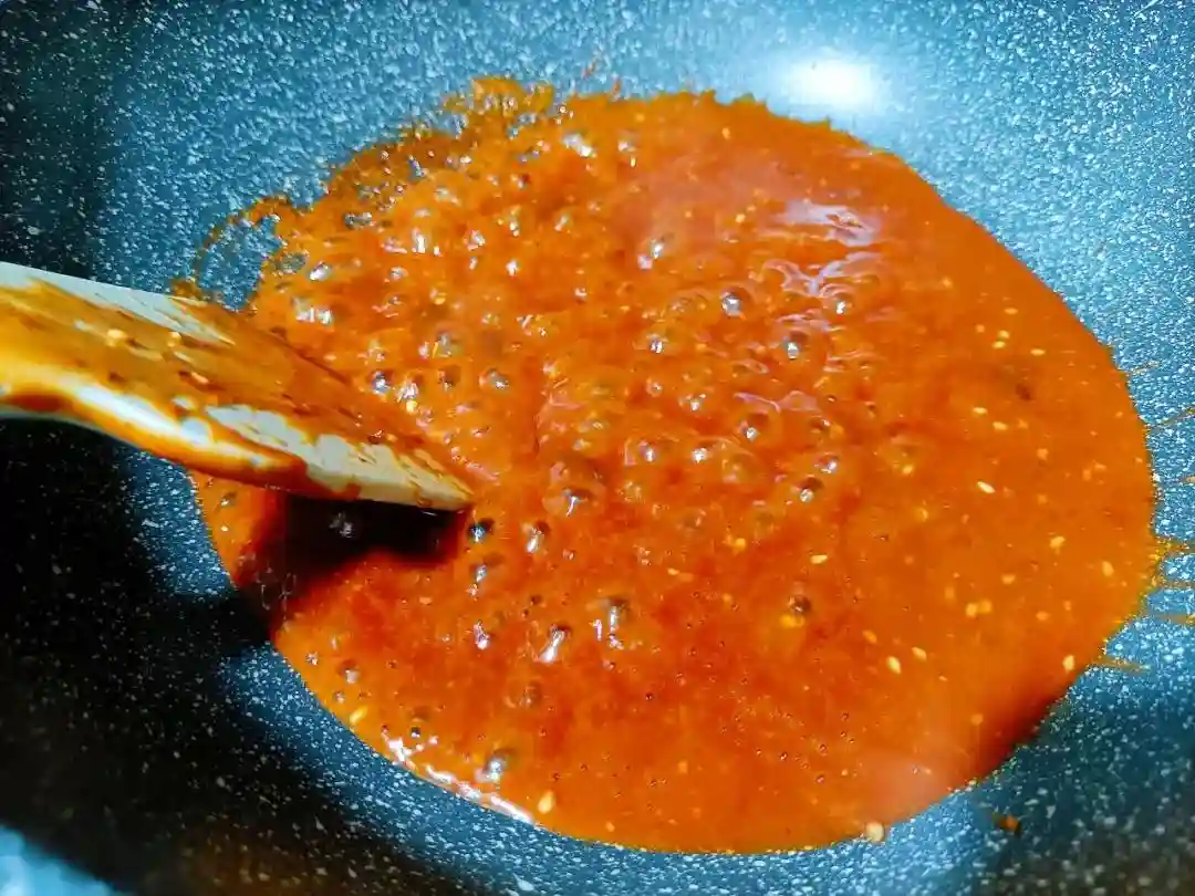 水一定要少量,熬煮出的酱挂勺粘稠最合适。