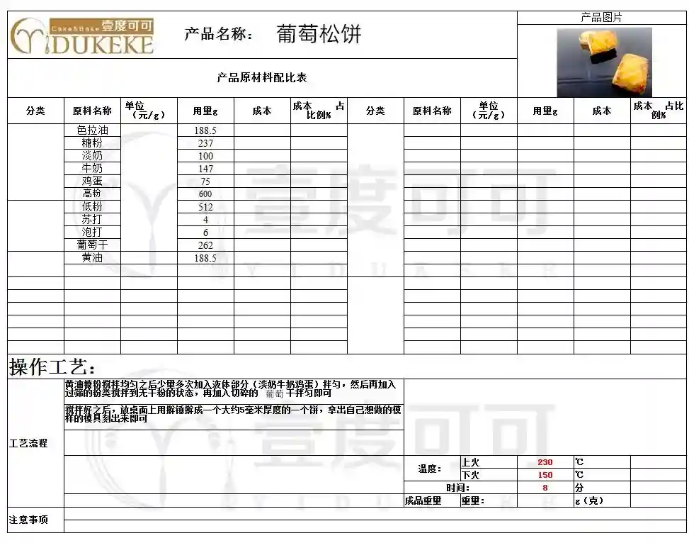 17、入炉烘烤,上火240℃,下火160℃,烘烤8分钟左右。