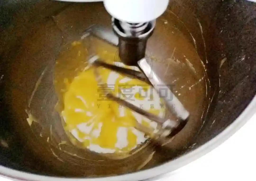 5、将黄油、色拉油和糖粉中速搅拌均匀。