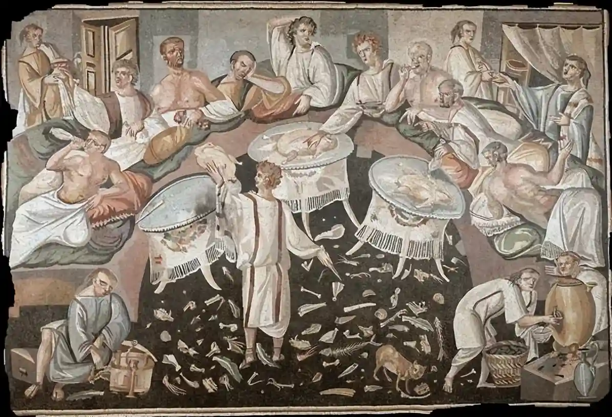 这并不是说古罗马的烹饪习惯是可持续的。精英们的宴会超出了当代人的理解。许多宴会持续八到十个小时,尽管当晚的程序取决于主人的简朴程度。讽刺作家谴责他的同时代人,抱怨这种过度行为:“我们的祖父中有谁建造了这么多别墅,或者一个人吃了七道菜?”