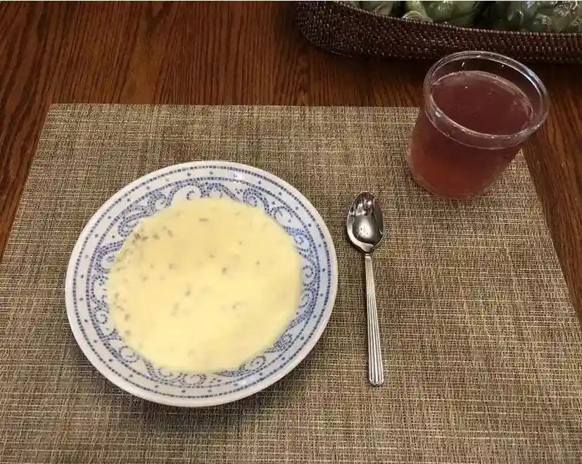 “粉碎大麦,前一天浸泡,洗净,放在火上煮足够热时加入油,一束莳萝,干洋葱,初乳和喀西茄一起煮熟以获得更好的汁液,加入青香菜和少许盐;把它带到沸点。