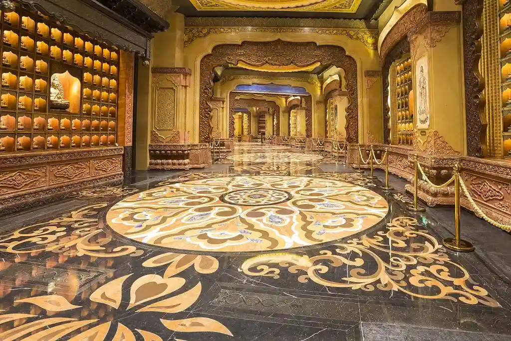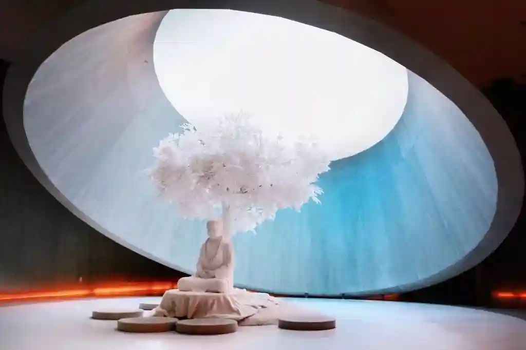 与大报恩寺一脉相承,佛顶宫也运用了极具现代科技的手段,在一处150米深的废弃深坑中,修建了深埋在地下的地宫。9层深的地宫更像是一个佛教文化的博物馆,每一处细节都有心思巧妙的设计与伏笔。即便不是佛教徒,这里依旧是一座华丽令人震撼的艺术殿堂。
