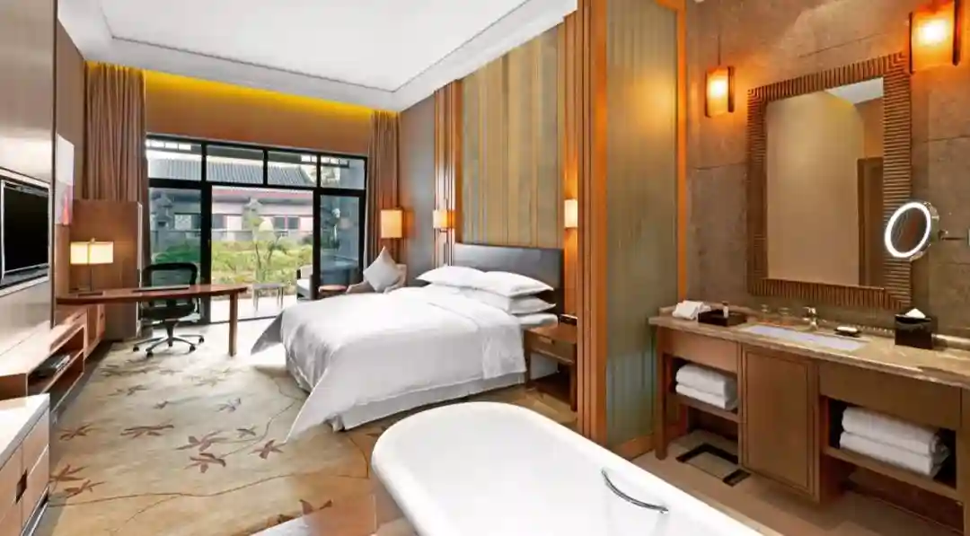 杭州西溪喜来登度假大酒店就坐落在西溪一角。藏身在西溪茂密的植被中,远看只有“白墙、灰瓦、朱红色的立柱”,这份古朴悠然仿佛江南水乡,给人误入“桃花源”之感。酒店无论哪种客房都会配备私人阳台,这样独处的一方美景尤其适合需要偶尔“避世”的双子座,喜来登标志性的特色床垫和床品更能助人一夜好眠、放松身心。
