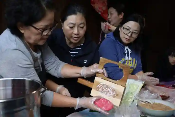 “你把糯米放到这几个模型中,稍微用点力,这就成了……”近日,在宁海县河洪村的一栋古民居里,20余名台湾同胞与当地村民一起,兴致勃勃地制作两岸特色糕点。
