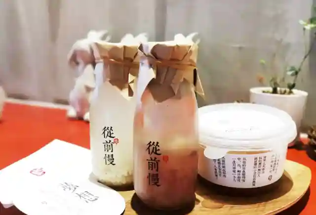 《从前慢》是木心先生创作的一首诗歌:“清早上火车站长街黑暗无行人卖豆浆的小店冒着热气从前的日色变得慢车,马,邮件都慢一生只够爱一个人”。像这诗一样,甜品的古早味在这家店里显得更加朴素又精致。