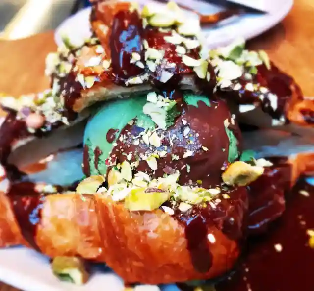 踏进用很多铁质吊篮装饰的店内,扑面而来的就是绿色小清新风和诱人的甜品味道。除了冰激凌配羊角面包和北海道双层芝士蛋糕,还有经典蘑菇鹅肝烩饭和番茄罗勒意面。把这家综合甜品店列到巧克力的list里,是因为喜欢巧克力的小伙伴一定不能错过这家店。店里主打巧克力甜品,你可以挑选喜爱的巧克力礼盒,也可以现场DIY巧克力作为礼物送朋友。