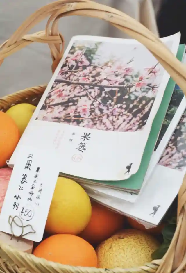 果篓不仅制作好喝也好玩的果汁,也创作一些日常的小美好,与传播出版文化的独立平台VOLUMEPRESS合作,将果农的生活和乡下的夜空写成文字出版成《果篓小刊》。堆满了独立杂志、和风明信片和唱片的全木质吧台,用树桩做的桌子和长木凳,果篓让果汁美学变得简单又丰盛。