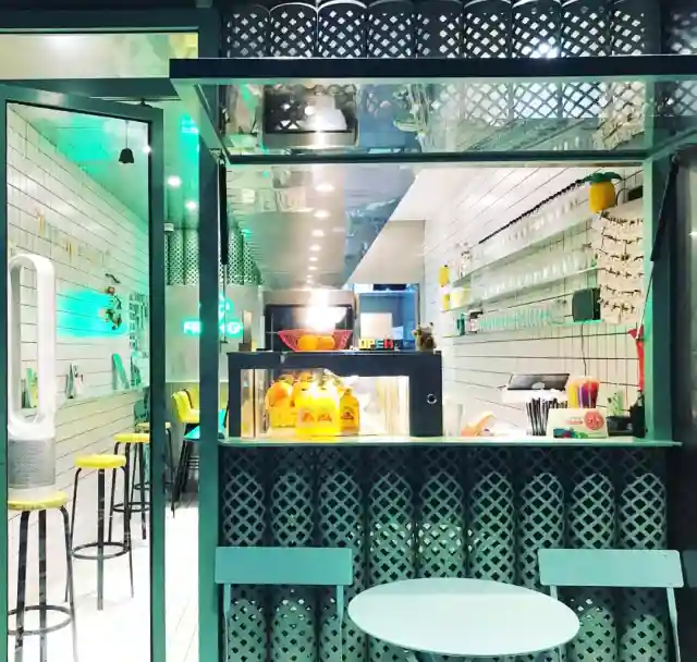 这不是一家网红,而是一家网绿。店里以薄荷绿的小清新色调和极简风的装修布置为基调,主打不加糖、不添粉的纯鲜榨果汁和酸奶果昔。
