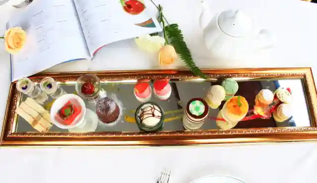 为了符合餐厅的名字,传统意式提拉米苏、巧克力熔岩蛋糕配手工香草冰淇淋和双倍意式浓缩咖啡等多种外形精巧可爱的甜点也放在一面镜子托盘上,为传统的下午茶增加了些趣味。趁热用叉子打开蛋糕的表皮,看着融化的巧克力从内心缓缓流淌而出,这是一种不可描述的满足和喜悦呀。