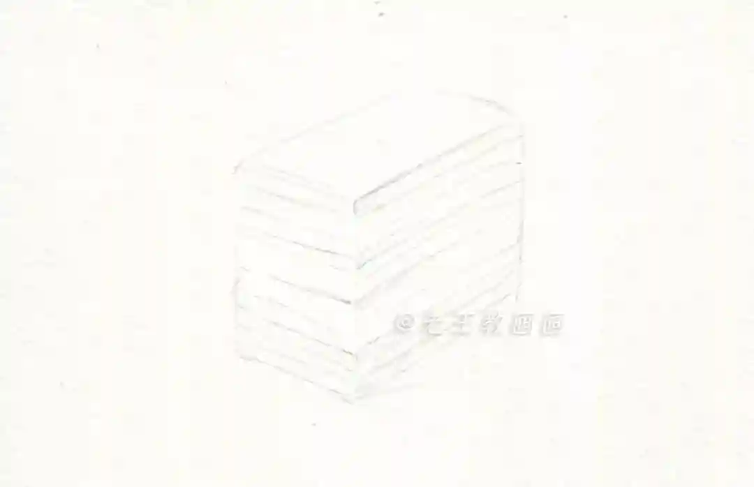 【第1步】:这是一块长方体形的法式蛋糕,根据下图,画出蛋糕的轮廓形体,把蛋糕每一层划分出来,分为4层(P1-2↓)