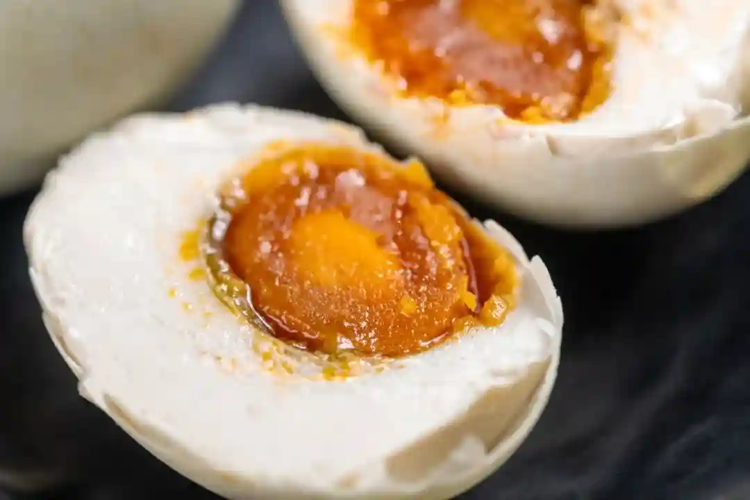 鸭蛋变咸蛋,最初其实是个无奈之举。如果你同时敲开一枚新鲜的鸭蛋和鸡蛋,就会发现两者的气味差异巨大。鲜鸭蛋扑面而来的就是一股浓浓的鱼腥味。这是高含量的三甲胺带来的独特气味,而鸭蛋的三甲胺含量显著高于鸡蛋的[1][2]。所以,新鲜鸭蛋气味刺鼻,很难让人直接食用。另一方面,传统饲养方法下,鸭生蛋是季节性行为,春秋一来就进入了产蛋高峰期,鸭蛋一窝一窝地下。来不及及时吃掉的鲜鸭蛋很容易变质。这样一来,人们为大部分鸭蛋找了一个最佳归宿——腌制。