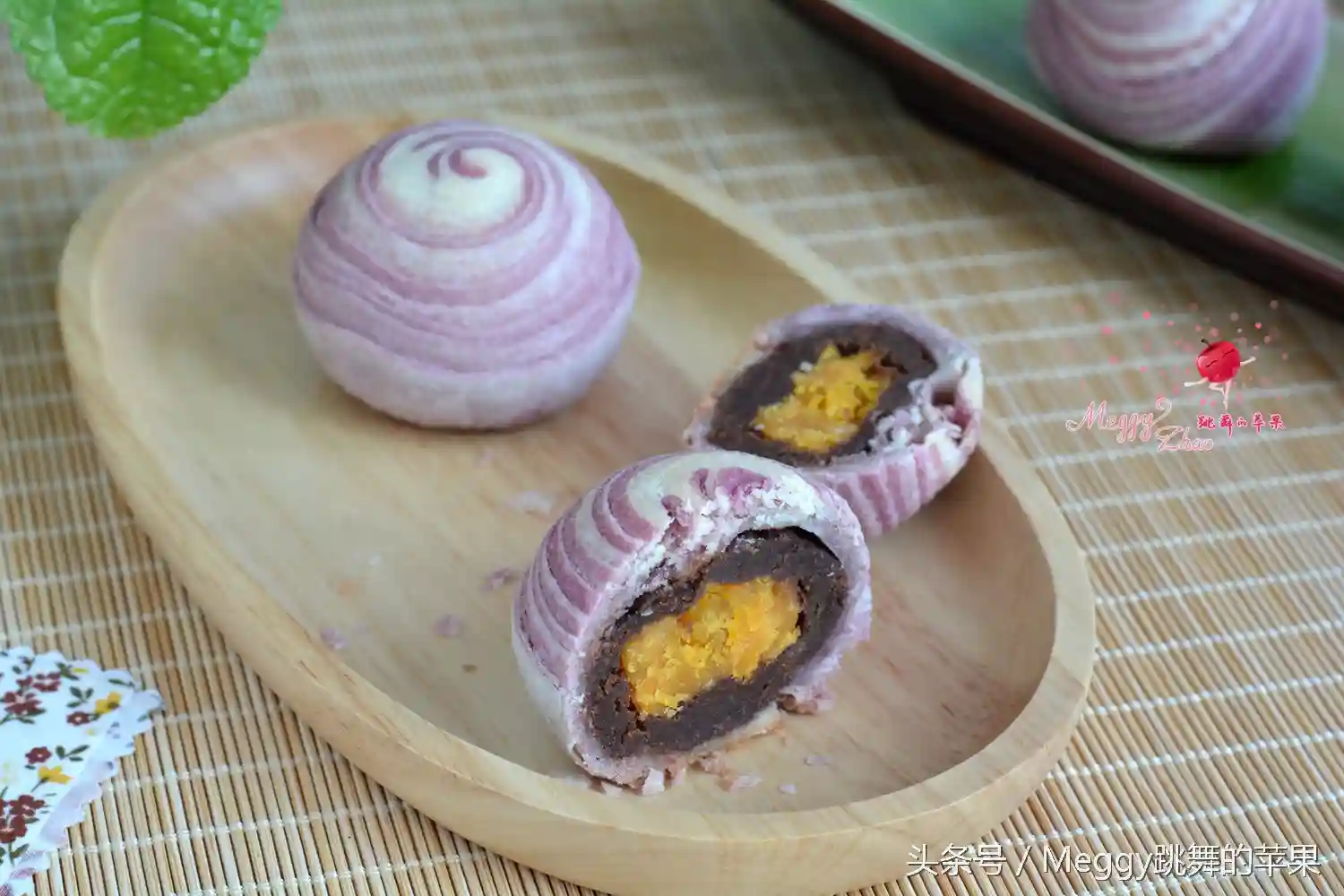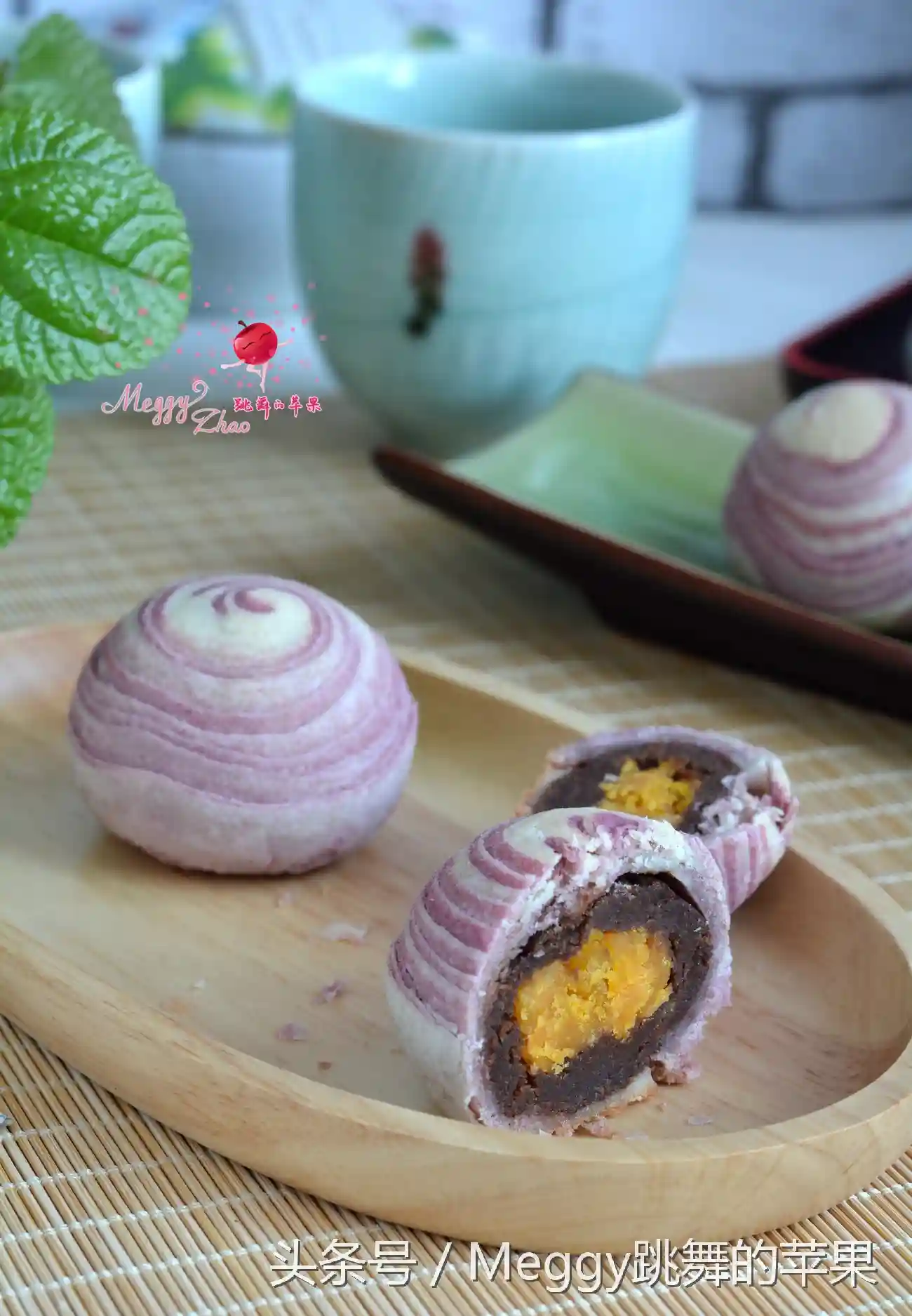 一圈圈的紫薯酥皮,寓意以家为圆心,不论走到哪里,家永远是中心;红豆沙代表着生活、事业红红火火、蒸蒸日上;中间的鸭蛋黄,代表着心中有爱——虽然我不把爱你们挂在嘴上,但我的心里却时时惦记着你们。