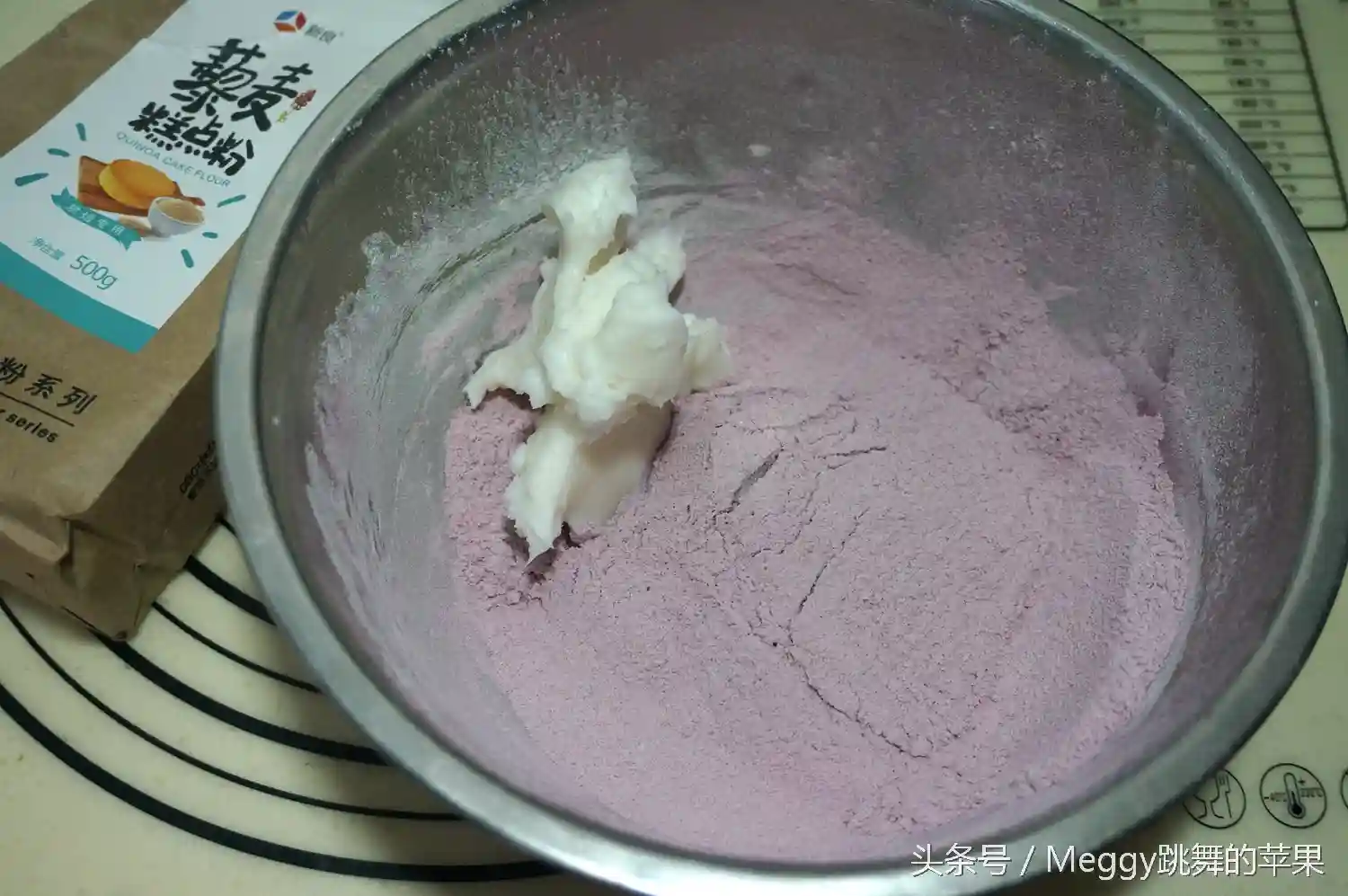 油酥面团:低筋面粉116克,猪油70克,紫薯粉20克