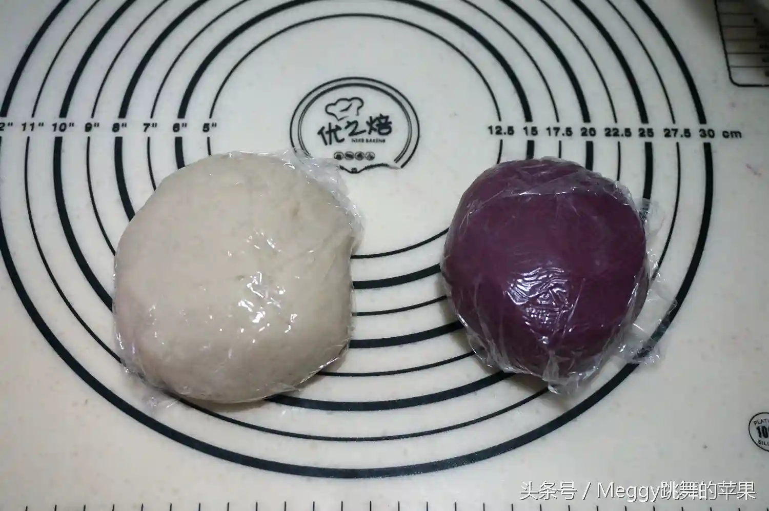 8.两种面团分别用保鲜膜包好,入冰箱冷藏一小时再用;