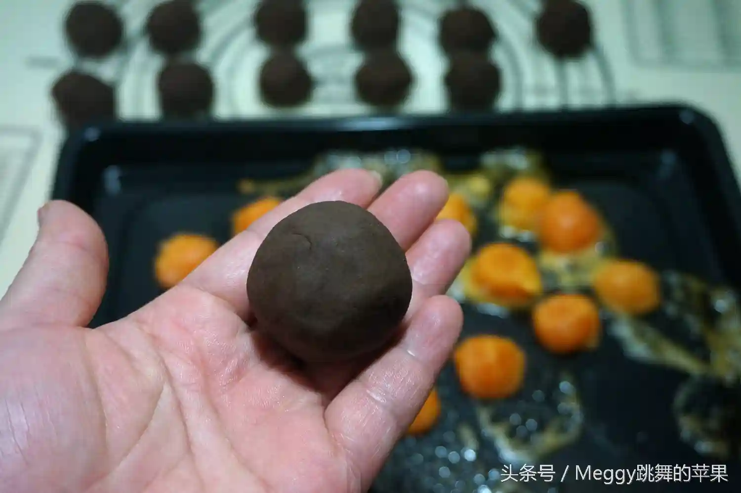 10.冷却蛋黄时,将自制的红豆沙按每个重20克分好,共18个;