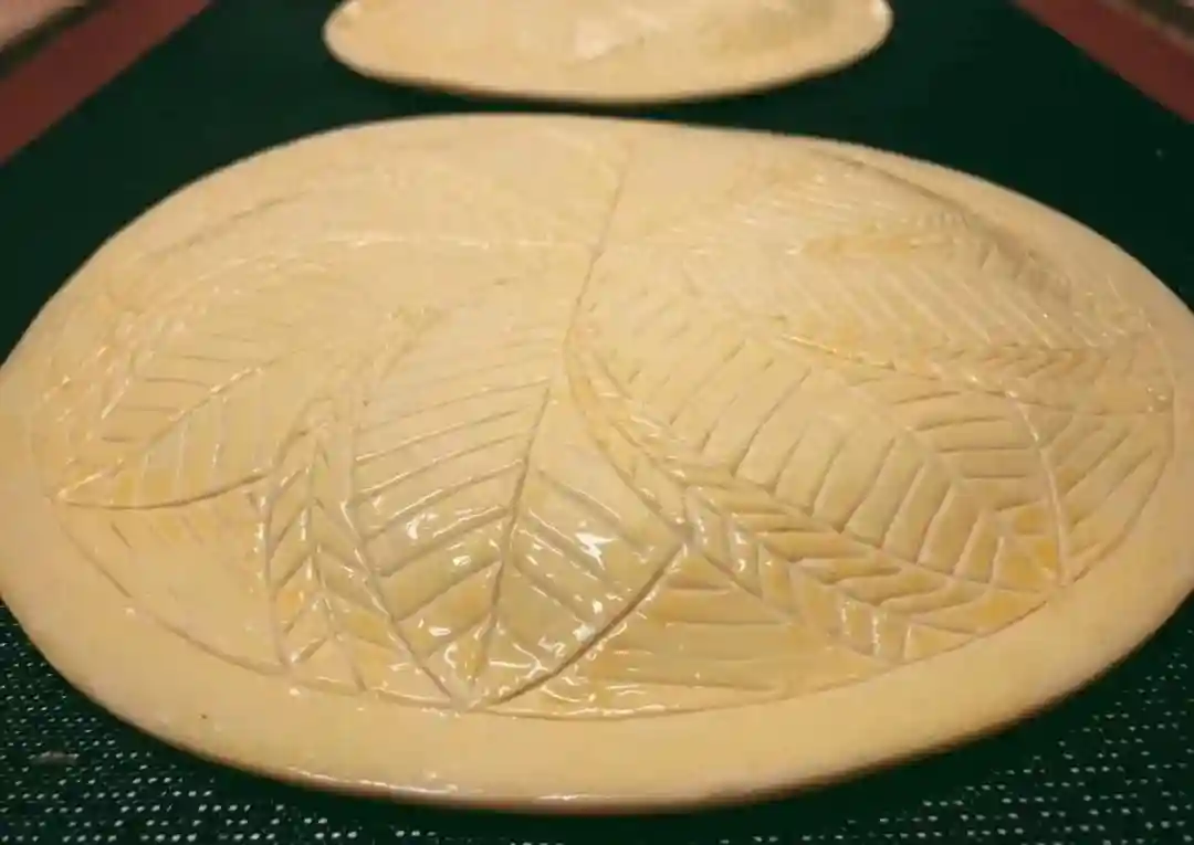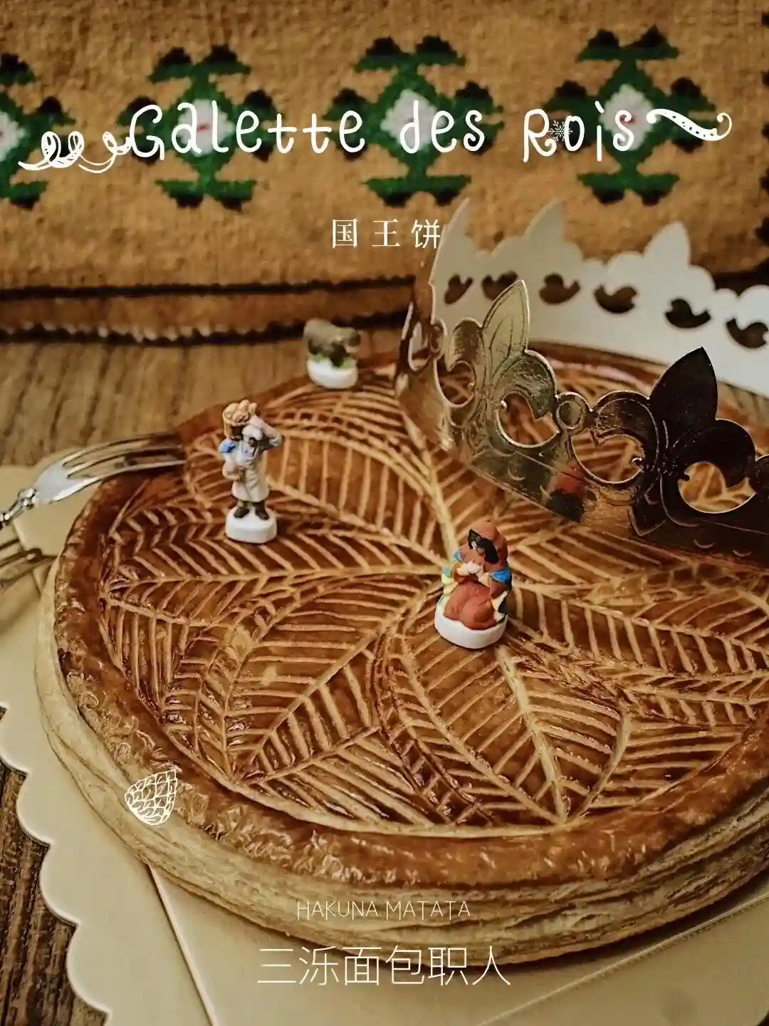 三泺面包店的【GalettedesRois】国王饼:是法国的传统新年糕点。每年1月6日的主显节前后就会在法国的小街小巷看到它的踪影。在裹着杏仁奶油馅的圆形酥皮薄饼中,一个称为“Lafève”小雕像被藏在蛋糕中,在自己那份蛋糕中吃到小雕像的人就能成为当天的国王。