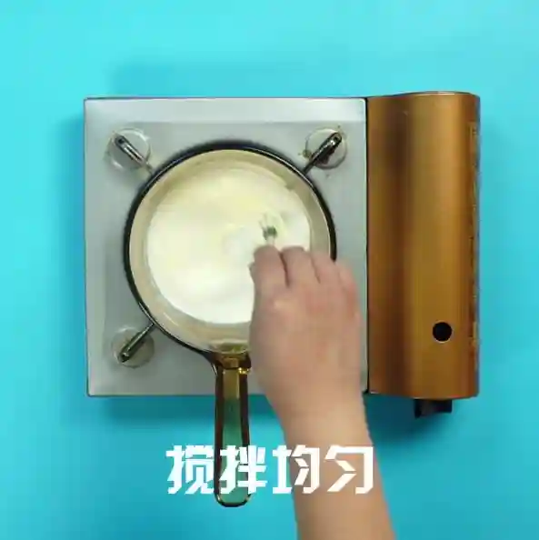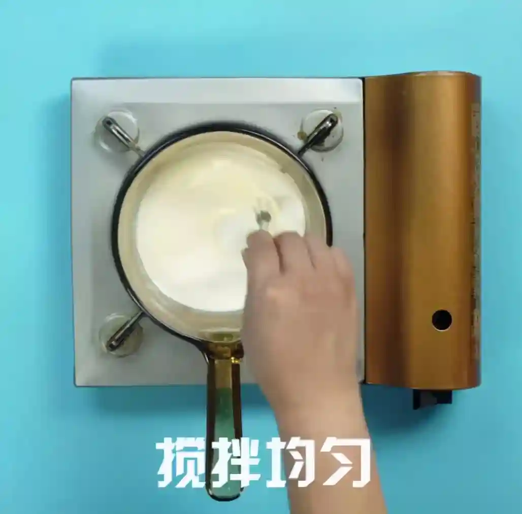 锅中倒入纯牛奶100ml,淡奶油100g,白砂糖10g、搅拌均匀,小火煮沸