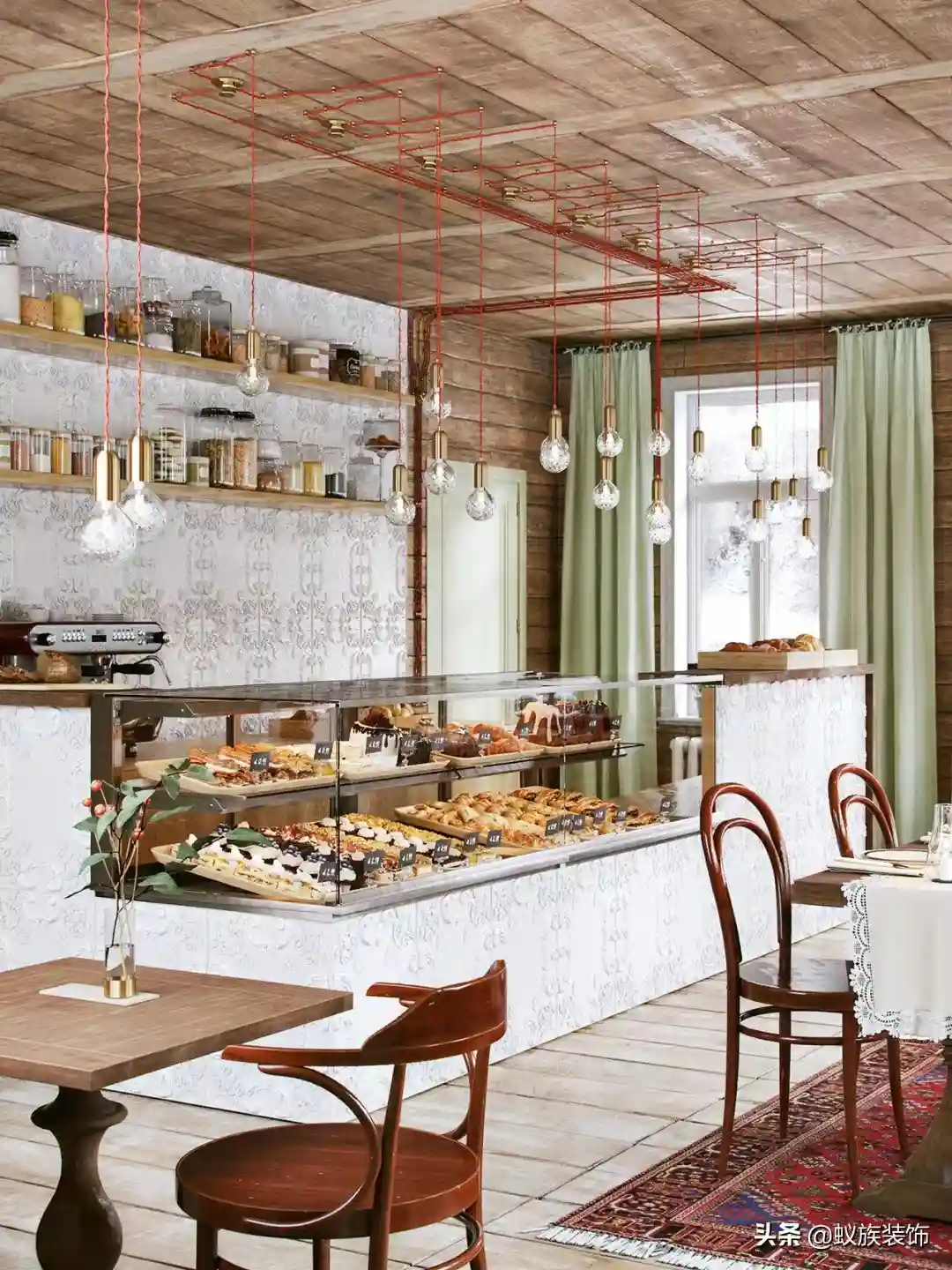 休闲区则可以适当降低灯光的亮度,相对幽暗的灯光能够弥补这种不足,并且会更有情调,给人以安全感。这样通过不同区域灯光亮度的调控,以及不同形式的光照感觉,可以使蛋糕店环境明暗有致,更有韵律感。