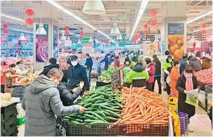 目前西安市场蔬菜供应充足。1月22日,市民在莲湖区丰禾路一家超市采购蔬菜。记者王健摄