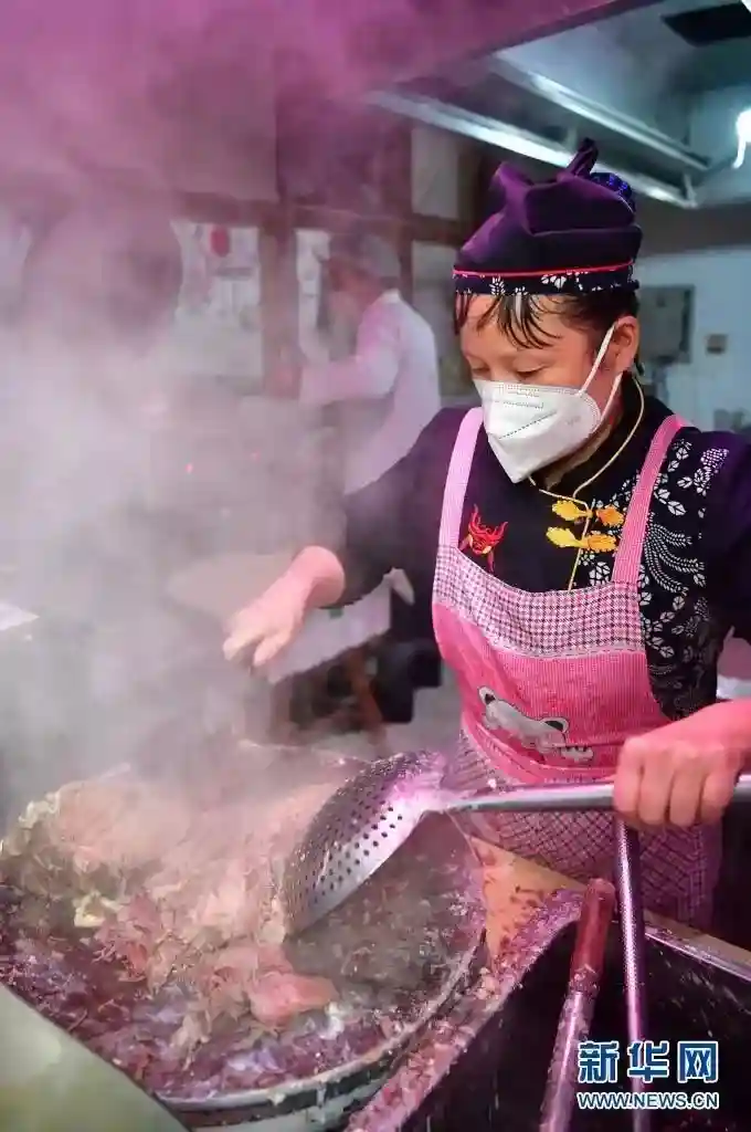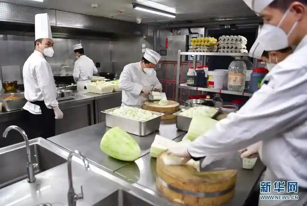 1月20日,在位于西安市曲江新区的西安饭庄大唐不夜城店内,厨师在制作餐食。新华社记者邵瑞摄