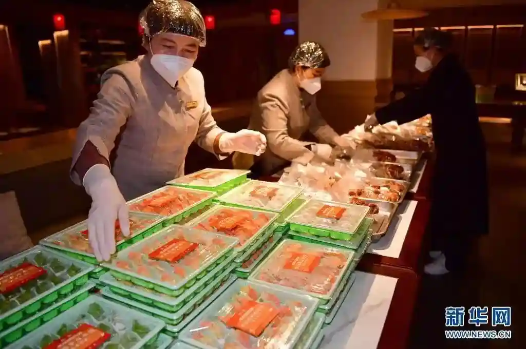 1月20日,在位于西安市曲江新区的西安饭庄大唐不夜城店内,工作人员在整理食品。新华社记者邵瑞摄