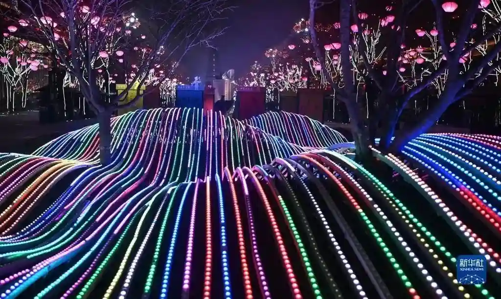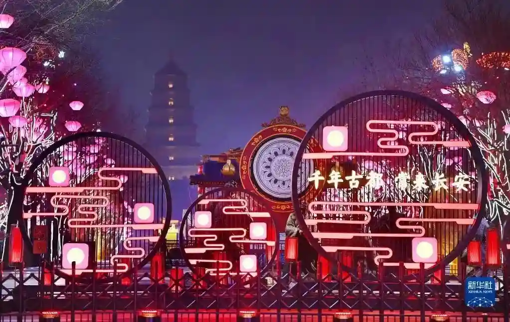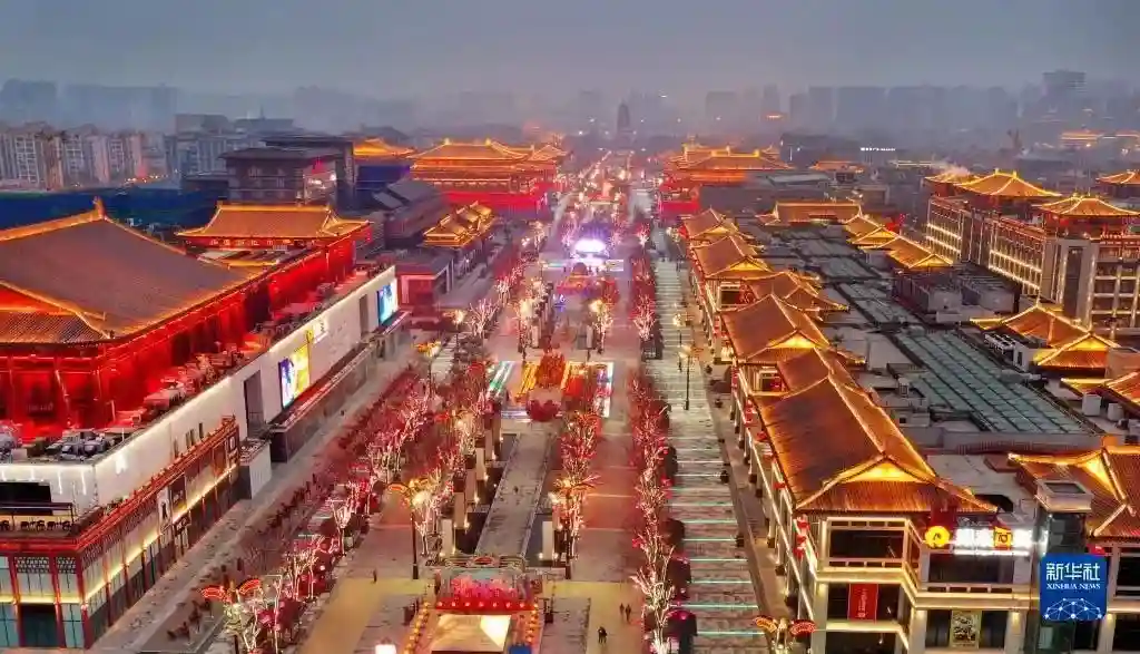 春节临近,西安市大唐不夜城点亮璀璨夺目的灯光,迎接新春佳节的到来。新华社记者陶明摄