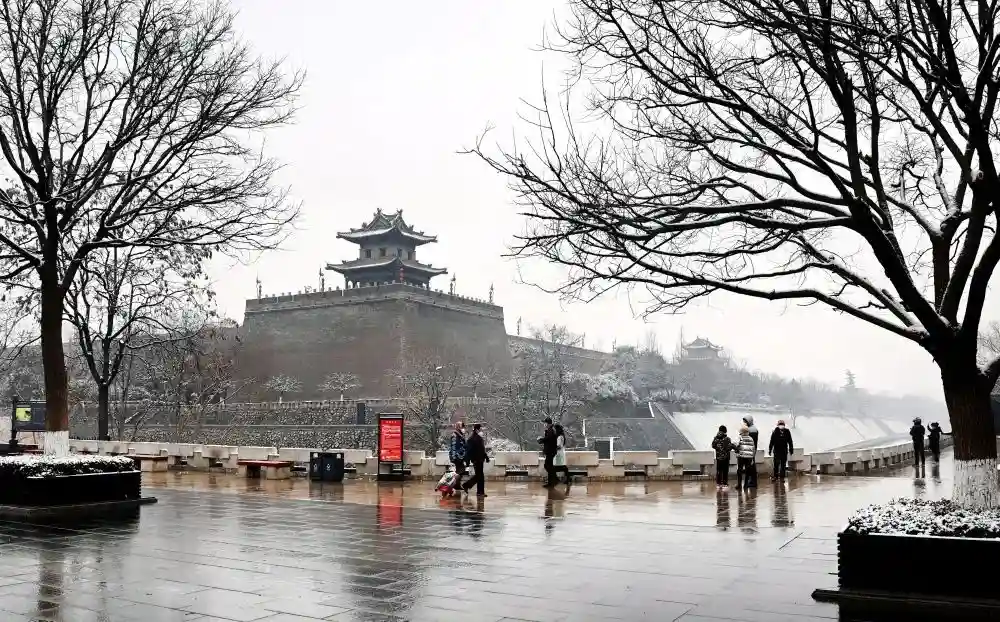 1月23日,市民在古城墙下休闲散步。新华社记者陶明摄