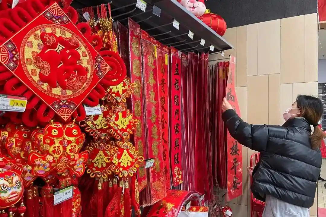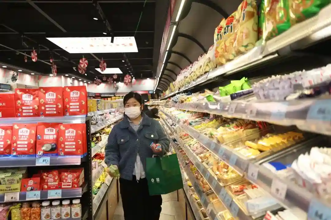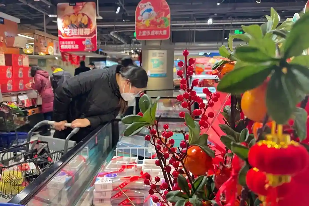 1月22日,南稍门一家超市售卖新年物资。记者郝钟毓摄