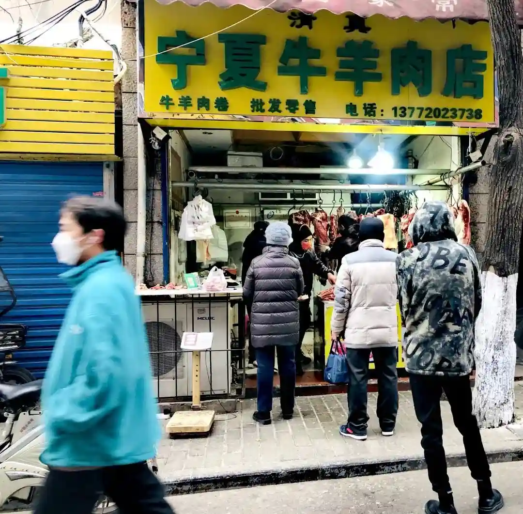 1月22日,西安北院门历史文化街区,店铺开始开门营业,牛羊肉、炒货、糕点等年货商品琳琅满目,市民有序排队购买。记者李安定摄