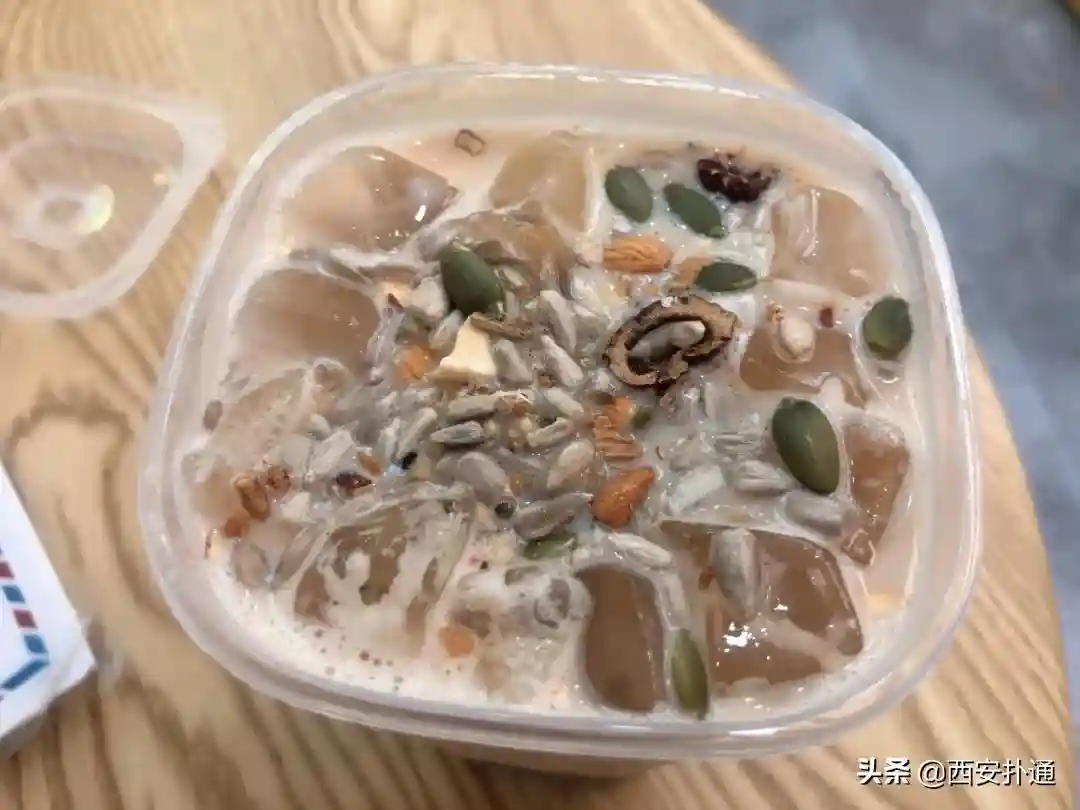 买的他家同名招牌——五谷坚果奶茶,不夸不黑,料巨多!不仅有仙草、红豆、珍珠打底,还会撒上满满一层的坚果!