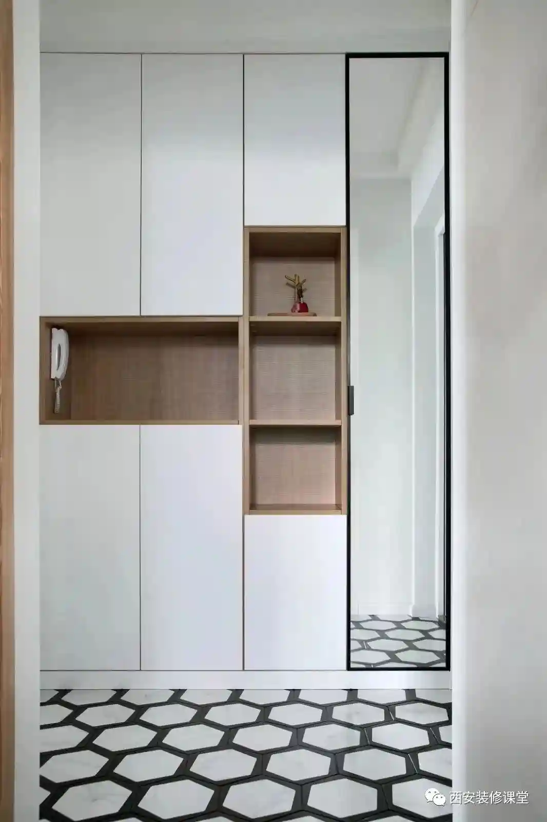 ▲进门鞋柜一扇柜门镜面设计,可以兼顾门厅的全身镜功能
