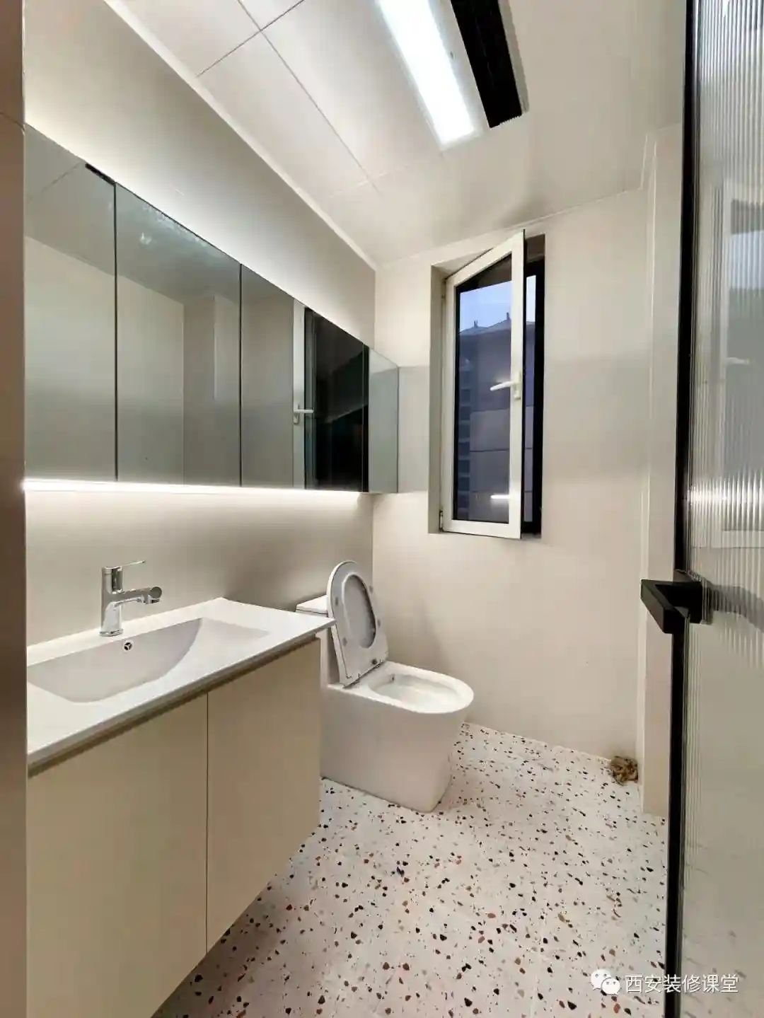 ▲卫生间镜柜最常见的做法,可以满足镜子功能,同时作为封闭的柜门,一举两得,同时视觉上可以放大空间