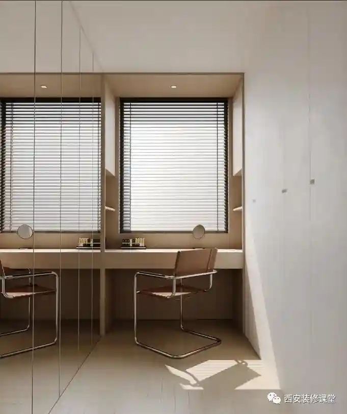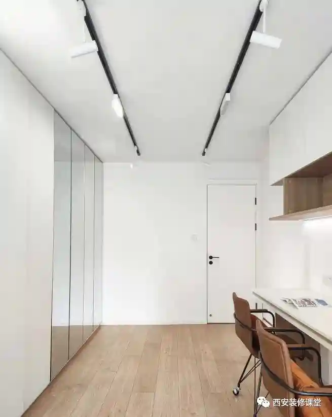 ▲书房兼顾衣帽间,局部柜门镜面设计,可以满足全身镜功能,同时视觉上放大空间