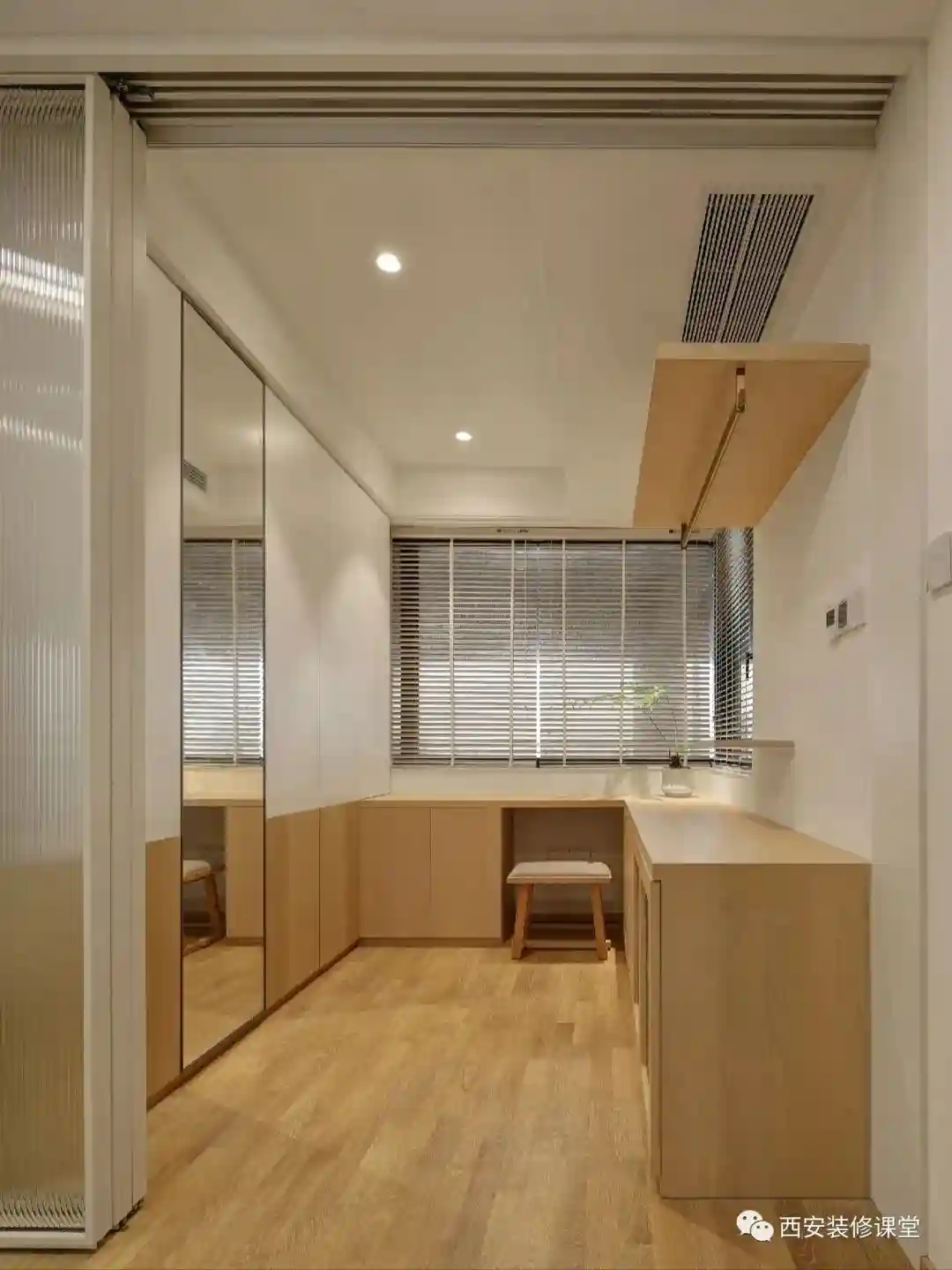 ▲书房兼顾衣帽间,一面柜子镜面设计,放大空间同时满足全身镜的功能