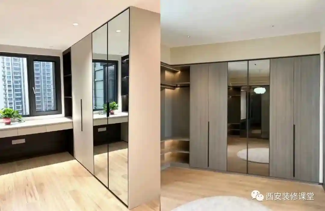 装修里头镜面柜门用的地方很多,今天看看镜面柜门在装修里头的运用。