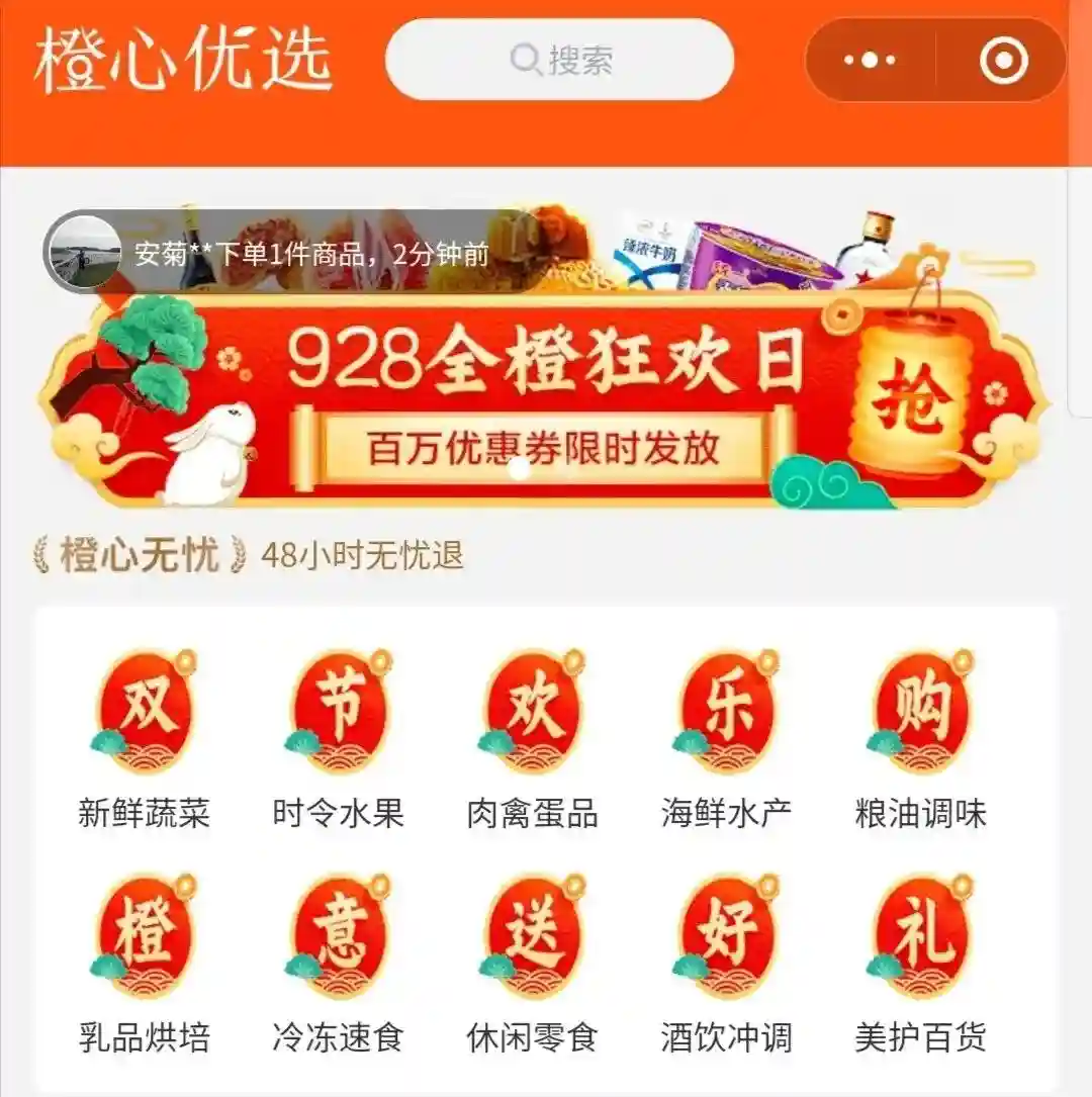 这几天,滴滴旗下社区电商平台——橙心优选在西安上线,主打低于市场价的限时秒杀产品,如生鲜水果、食品饮料等。