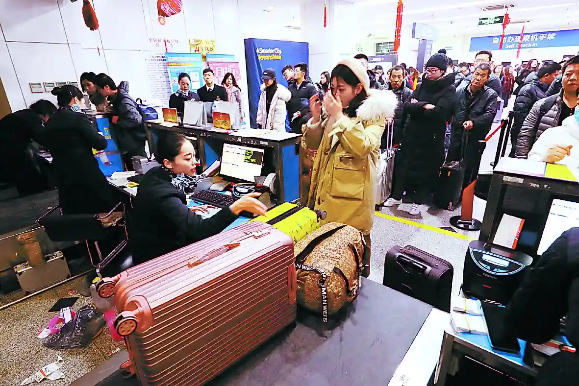 今天是春运的第十一天,早上6点,南苑机场一如往日的迎来春运的高峰客流,在这波早高峰中,机场地面服务人员将保障近3000名旅客,在中国联航地服部值机柜台,14个值机柜台全部开放。