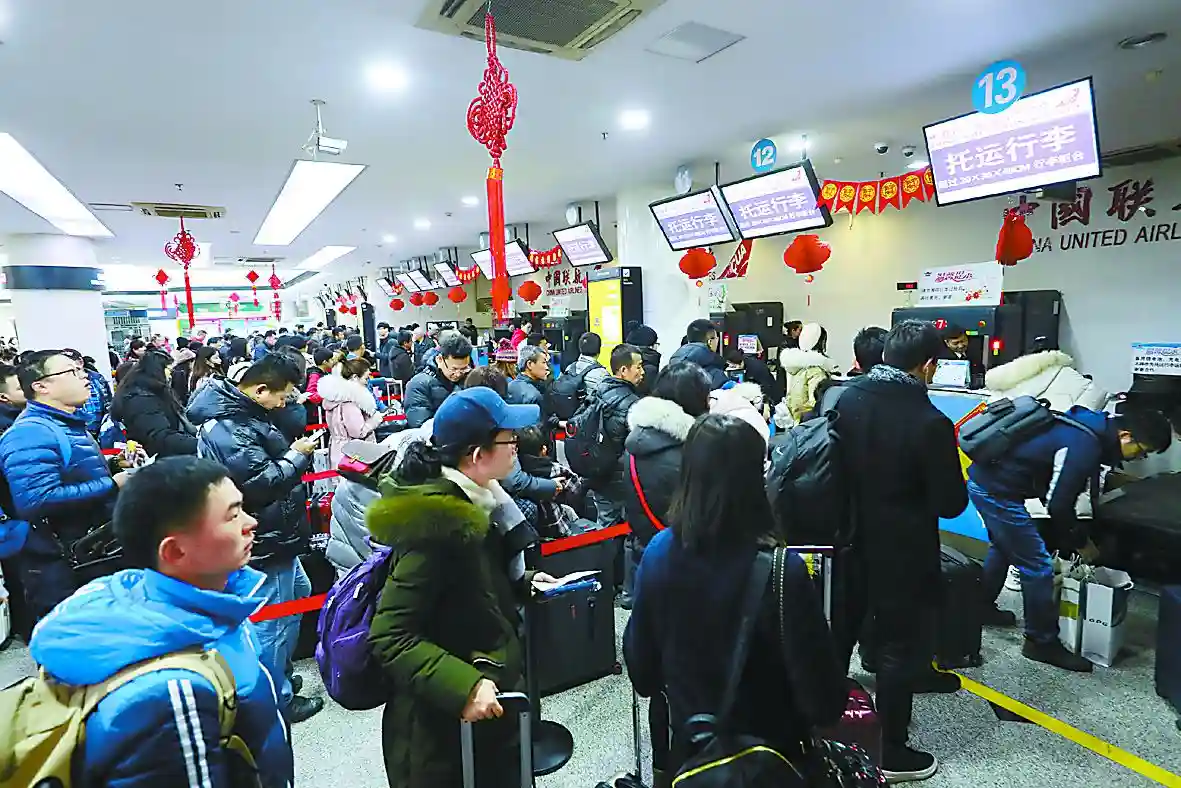 窗花、中国结……南苑机场航站楼一派节日喜庆。为了百年南苑机场做好收官,中国联航优化运力投入结构,针对热点航线增加班次,优化机型调配方案,新开南苑-梧州、南苑-岳阳、南苑-营口-哈尔滨3条航线,同时优化了北京至牡丹江、陇南、伊春、临沂,佛山至襄樊、合肥、浦东等30余条国内航线,基本覆盖了探亲、返乡和旅游人群较为集中的热点航线。同时,新开航线可以带动老区发展,为在京务工的两地人员提供交通便利。